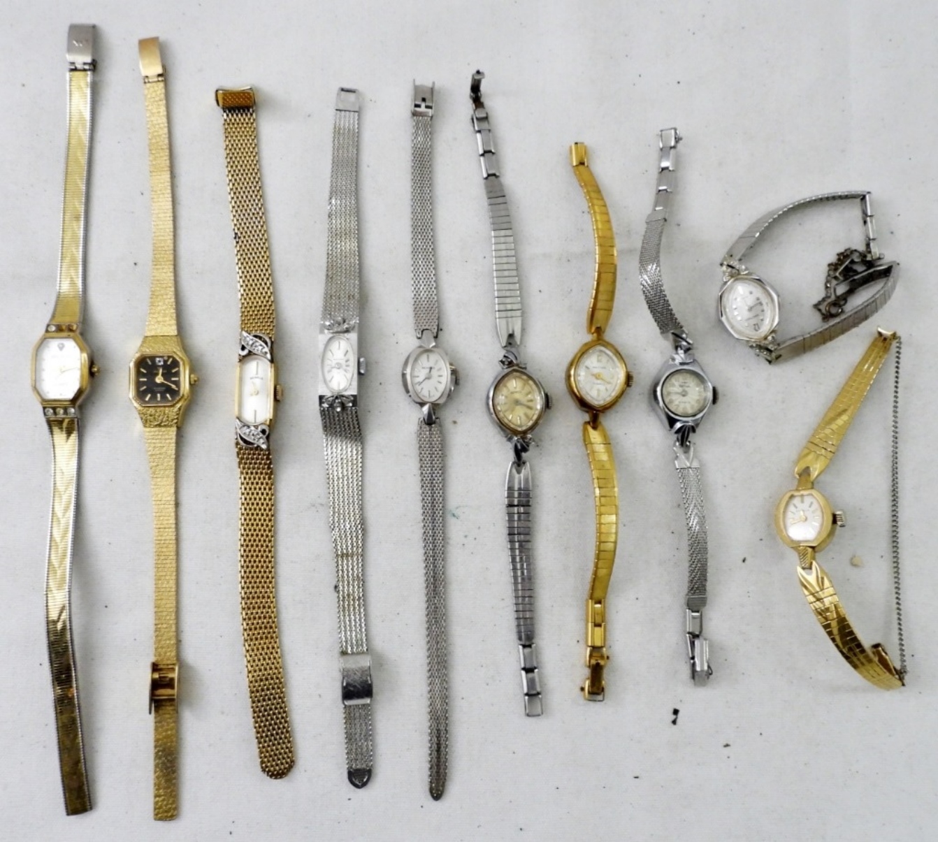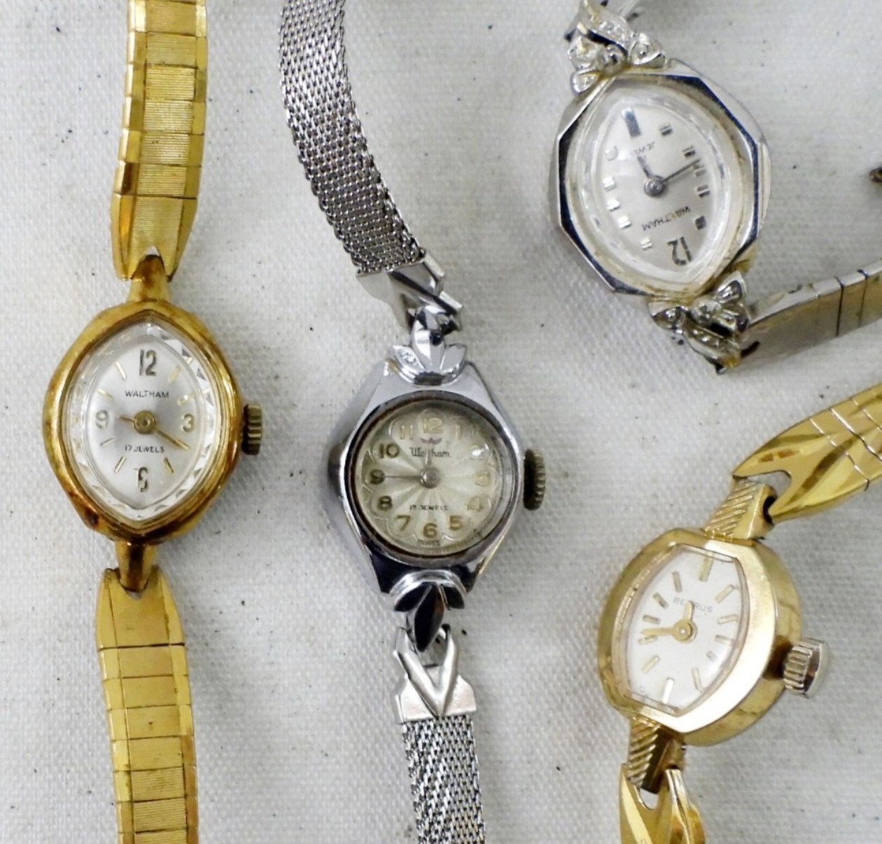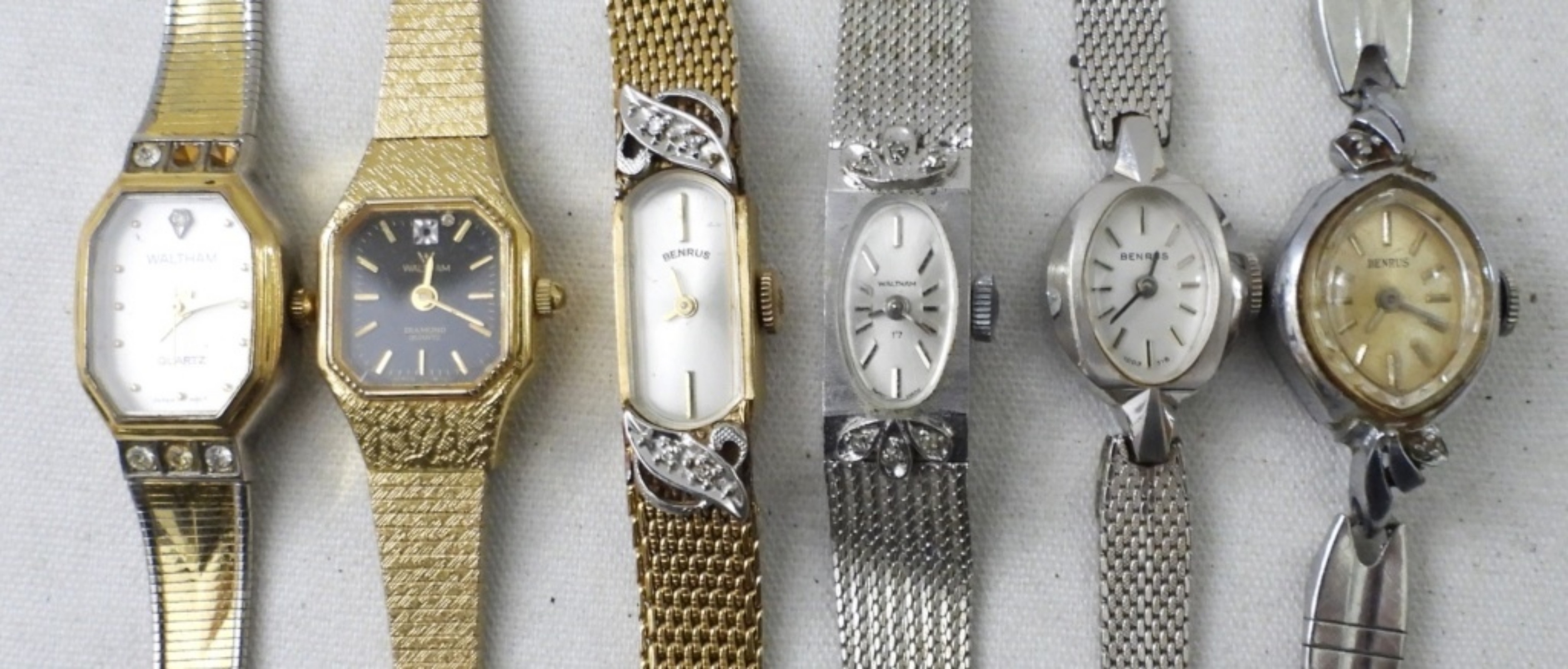 BENRUS & WALTHAM LADIES VINTAGE WATCHES, GOLD AND SILVER TONES. -NOT TESTED AS TO WORKING OR NOT-