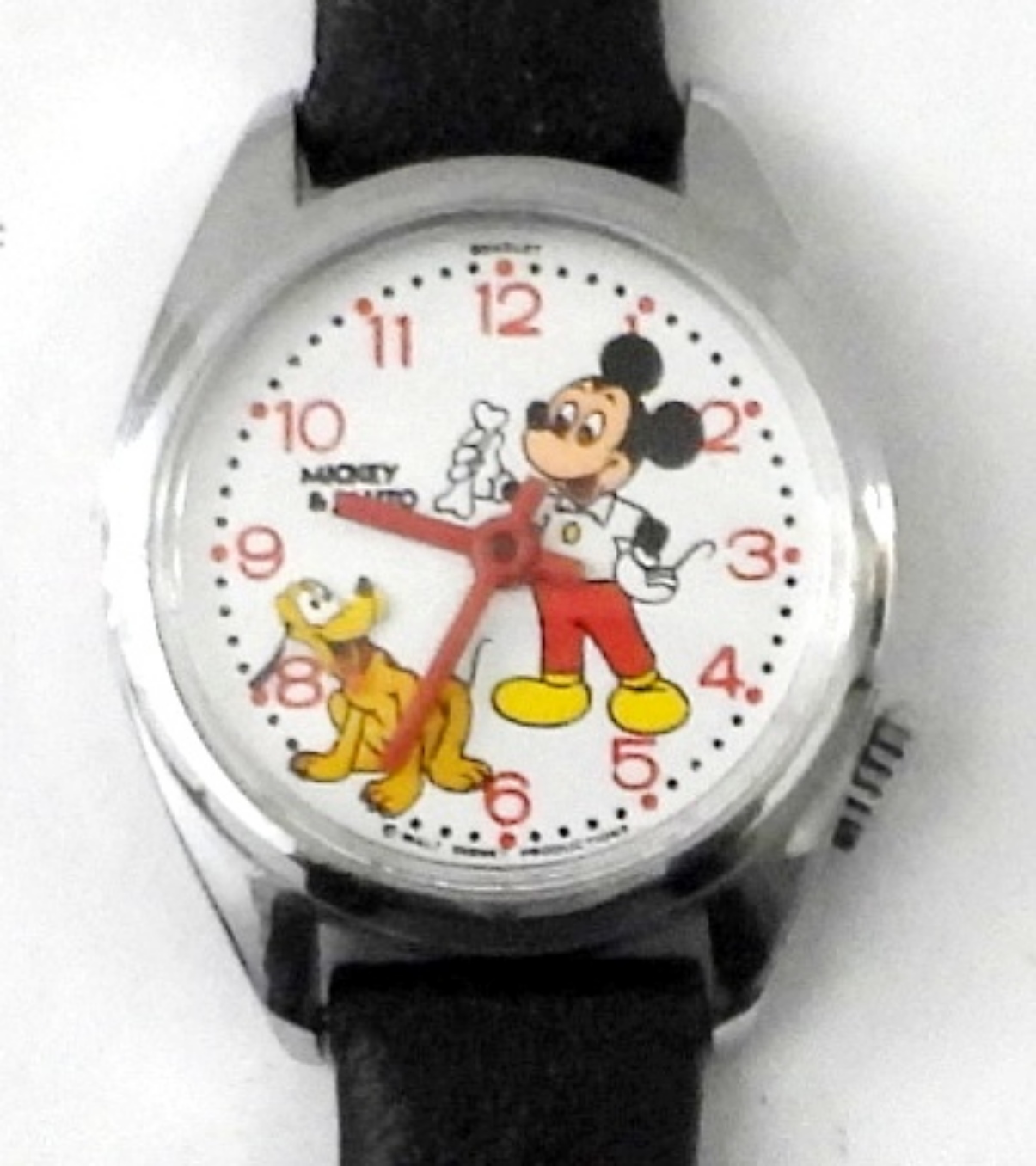 VINTAGE RARE BRADLEY MICKEY MOUSE & PLUTO 1970’S WATCH WITH BLACK PLASTIC BAND. IN REALLY GREAT CONDITION! -NOT TESTED AS TO WORKING OR NOT-