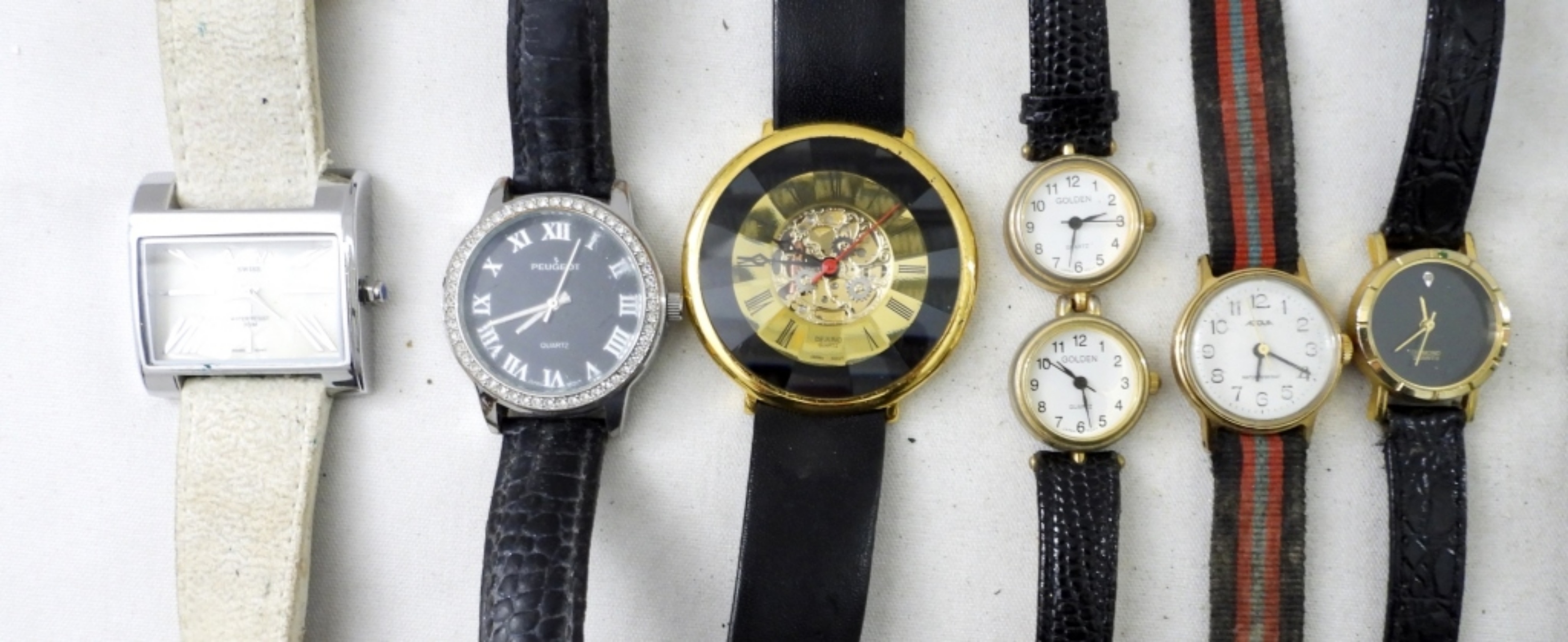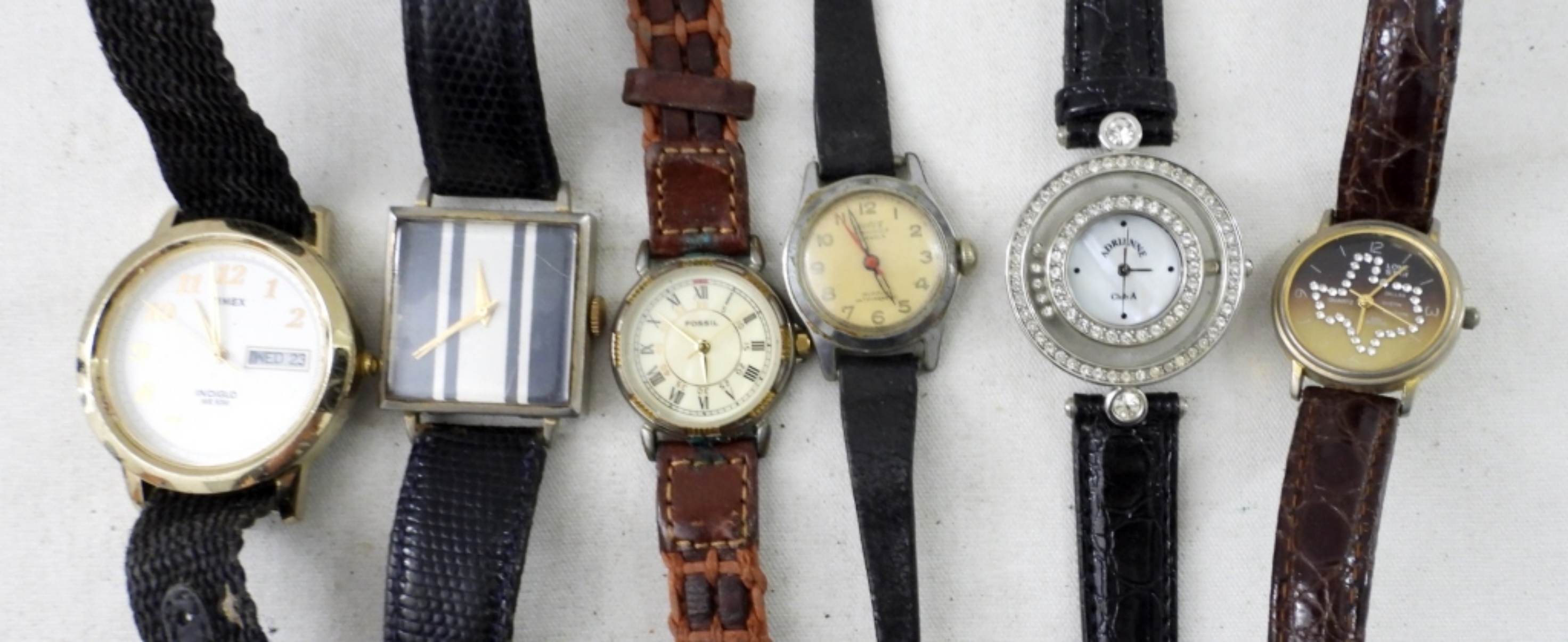 FIFTEEN WATCHES WITH LEATHER AND CLOTH BANDS. TIMEX, FOSSIL, GOLDEN & MORE -NOT TESTED AS TO WORKING OR NOT-