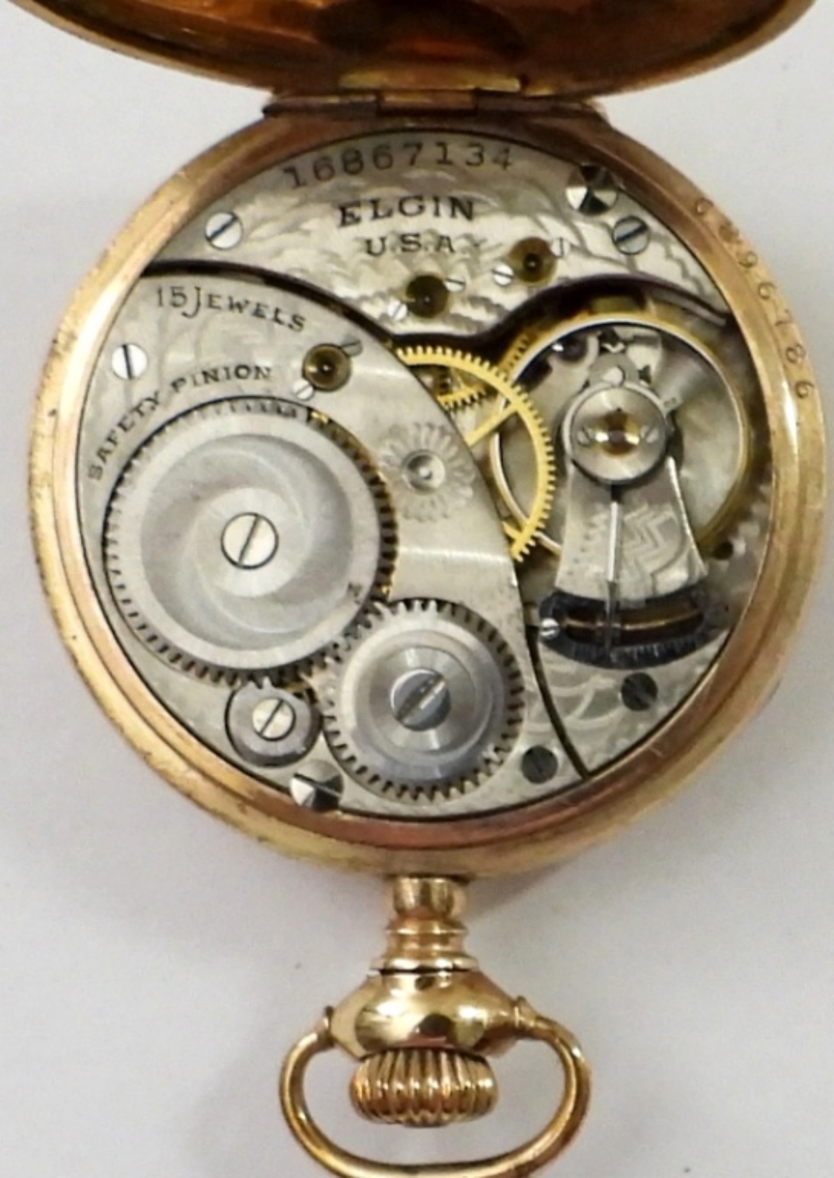 1912 ELGIN 0 SIZE 15 JEWEL WIND-UP POCKET WATCH GRADE 355 (SER#1687134) WARRANTLE B&B ROYAL 20YRS 6896786. RUNNING BUT NOT TESTED AS TO KEEPING TIME OR NOT