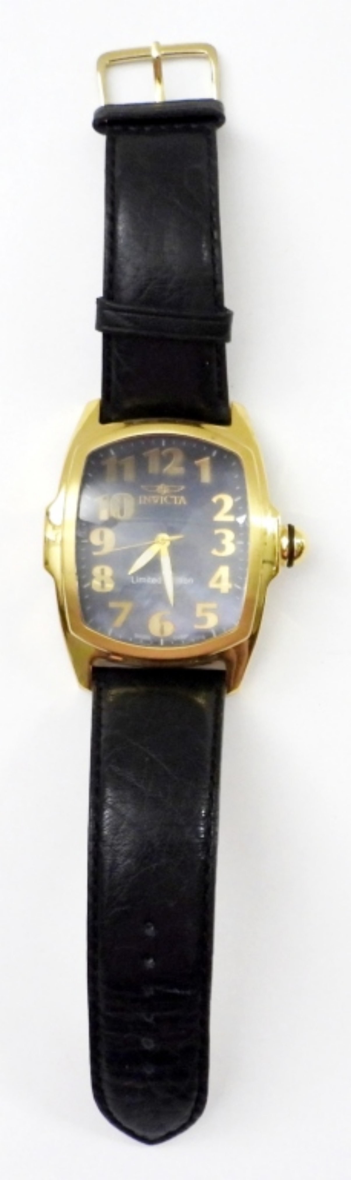 INVICTA SQUARE FACE MODEL#6406 LIMITED EDITION WATCH, BLACK BAND HAND MADE IN FRANCE, STAINLESS STEEL CASE WATER RESISTANT 30 METERS. SWISS COMPONENTS MOVEMENT.(ISA 638) O JEWELS CHINA FAR EAST ASS’Y INVICTA