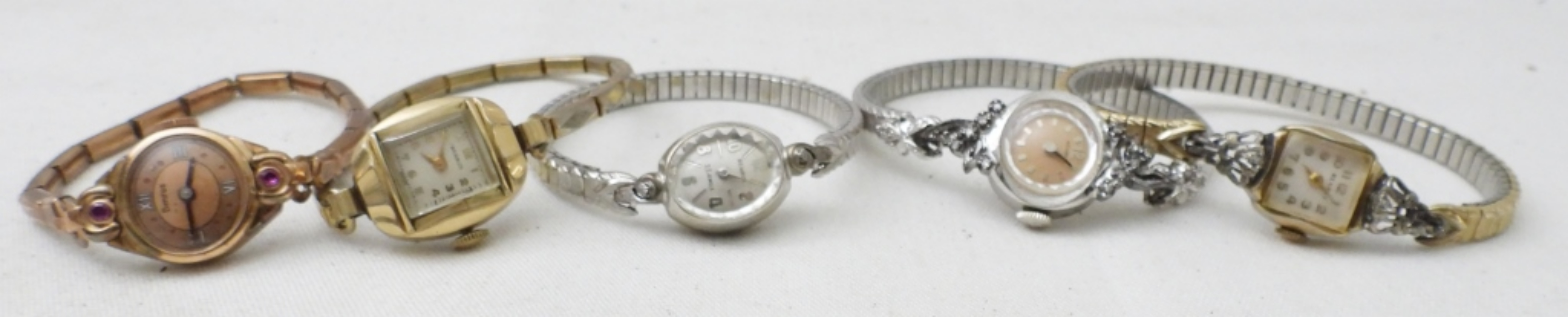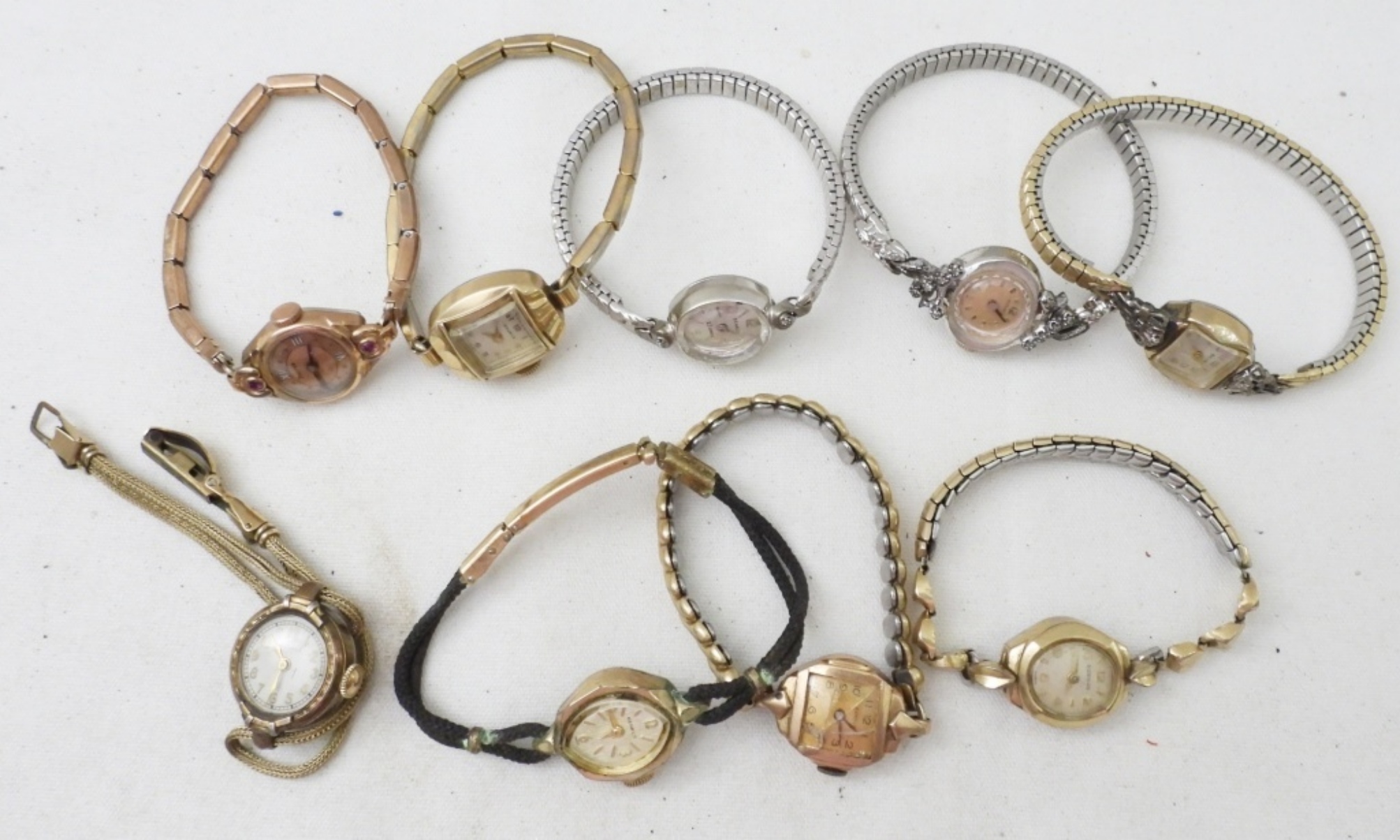 (9) LADIES VINTAGE BENRUS WRIST WATCHES, VARIOUS STYLES AND COLORS . NOT TESTED AS TO WORKING OR NOT