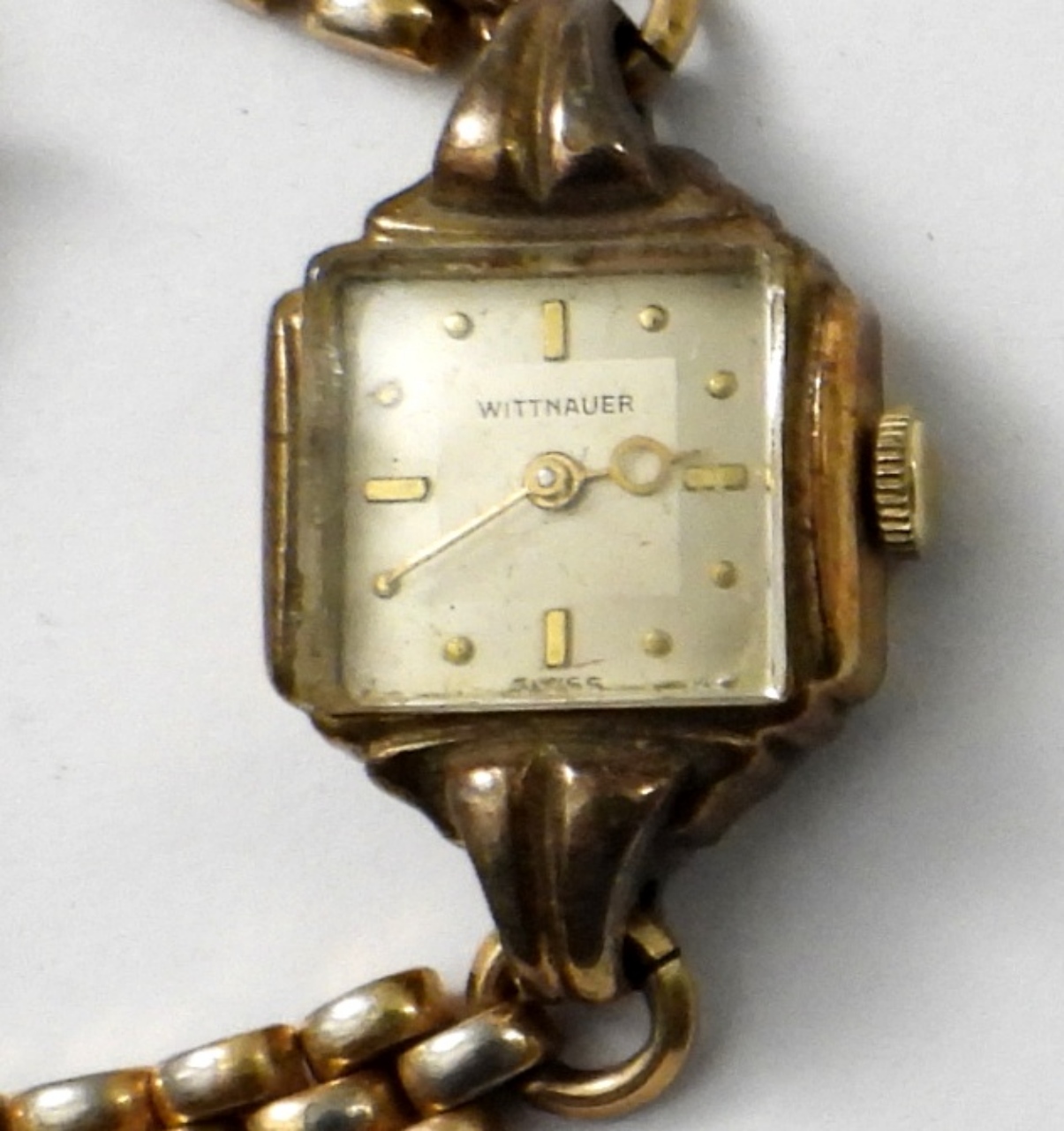 VINTAGE SQUARE FACE WITTNAUER LADIES WATCH, GOLD TONE. NOT TESTED AS TO WORKING OR NOT