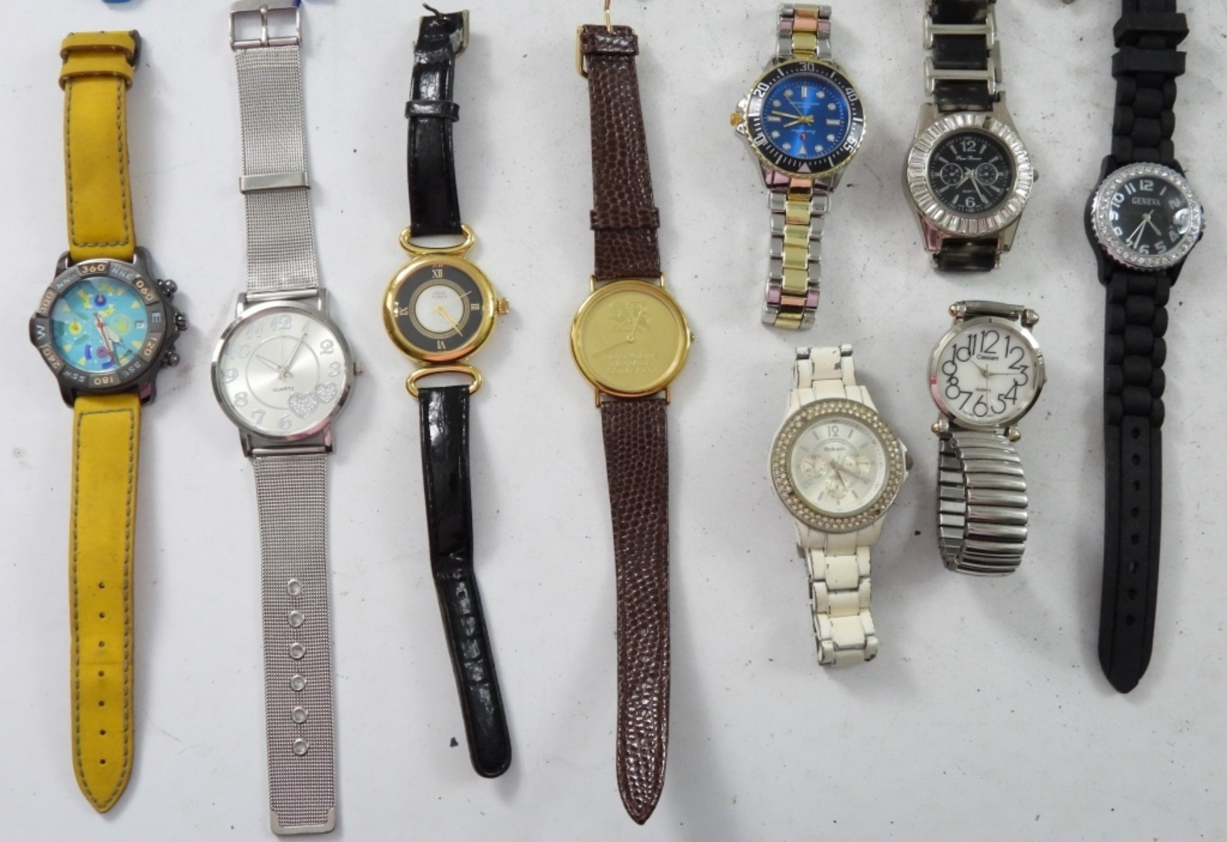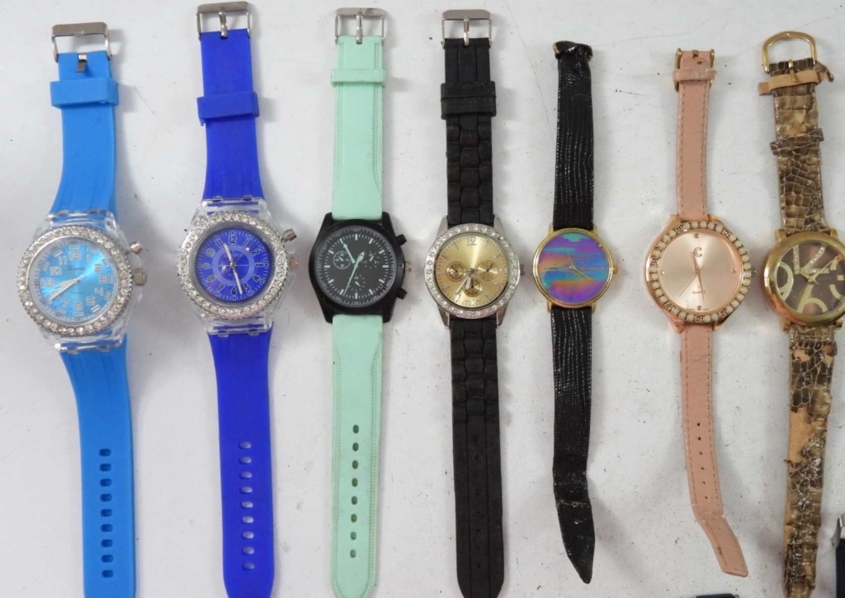 16 LARGE FACE LADIES WATCHES ,VARIOUS COLORS AND BANDS. NOT TESTED AS TO WORKING OR NOT