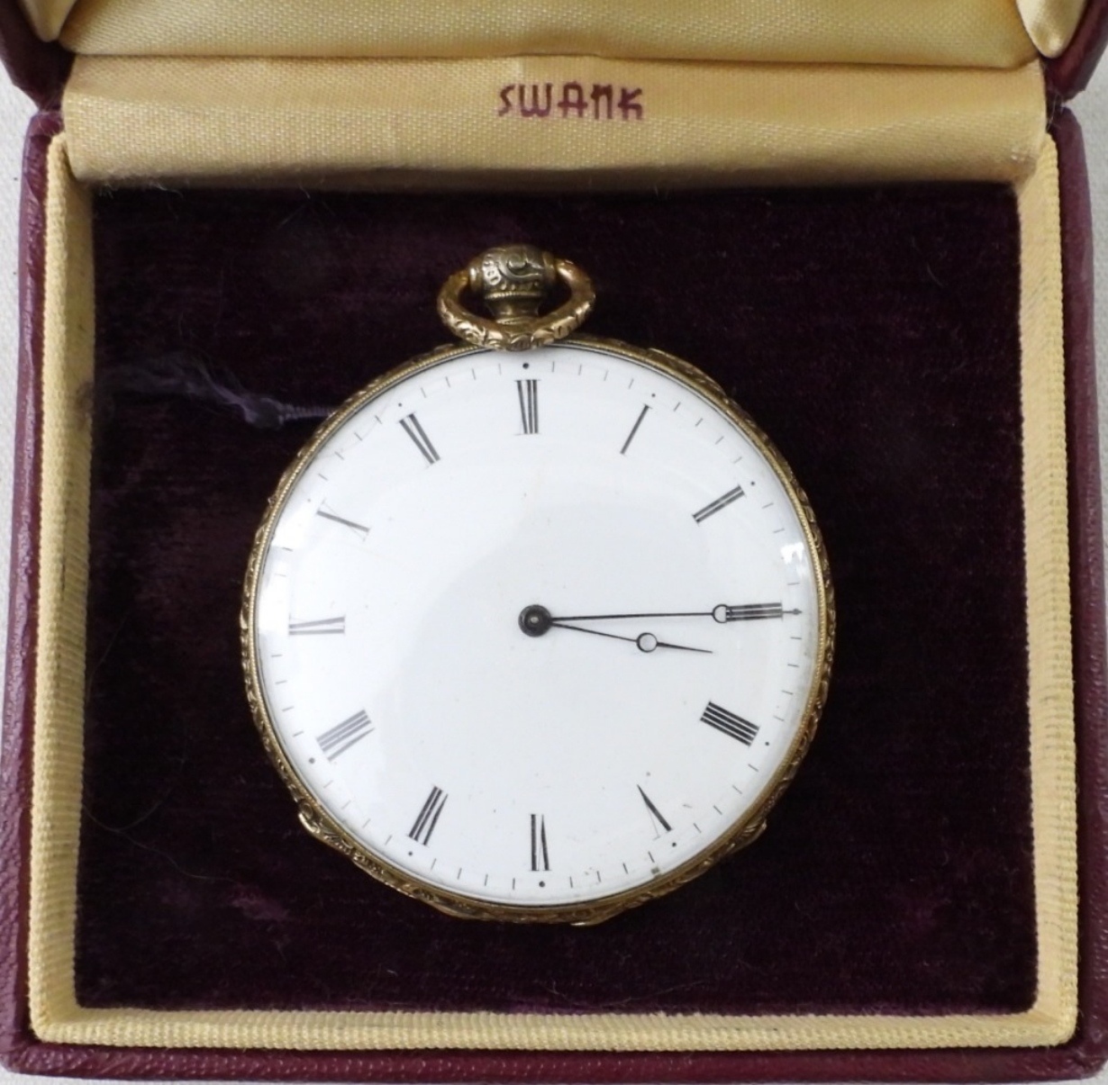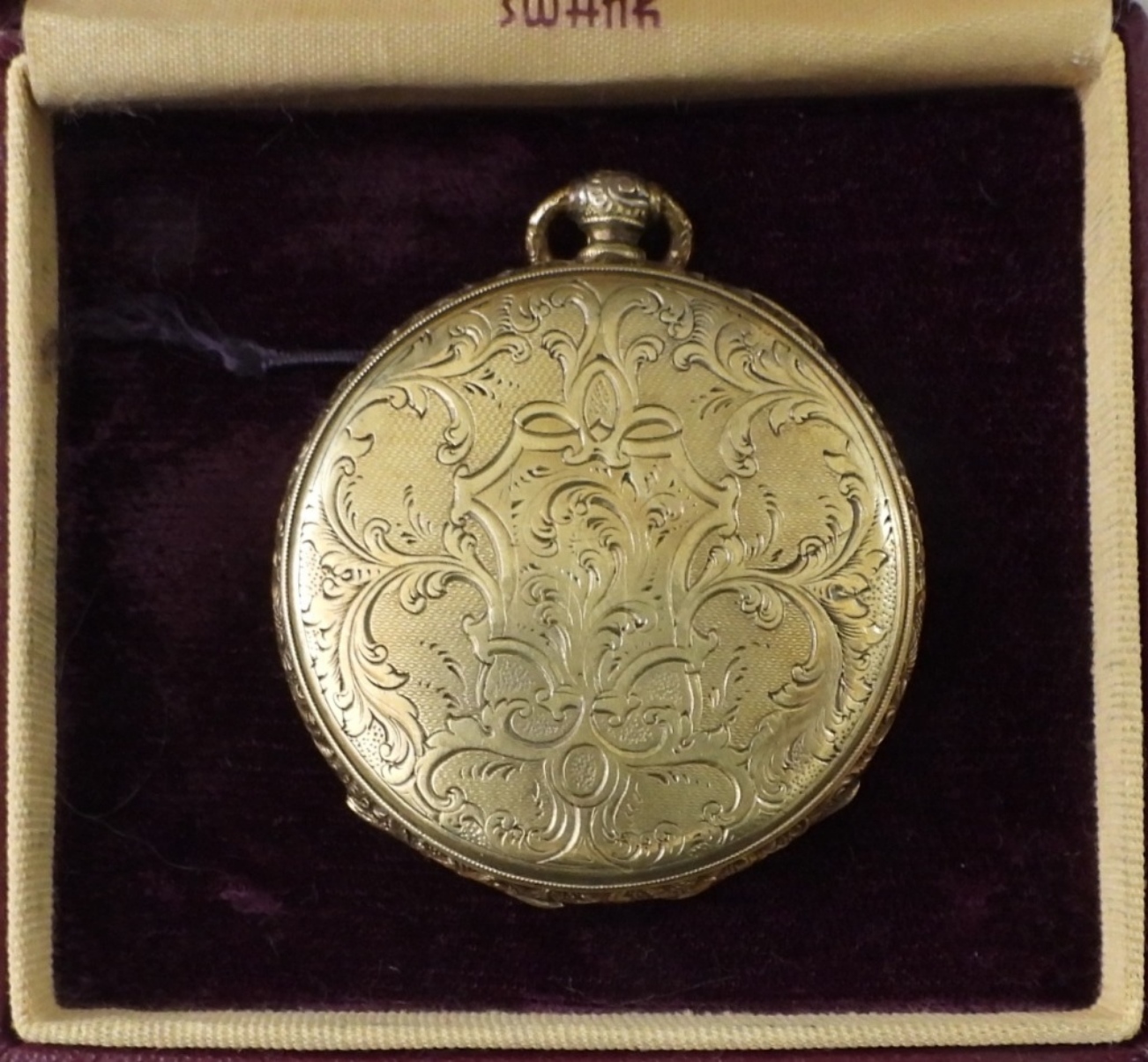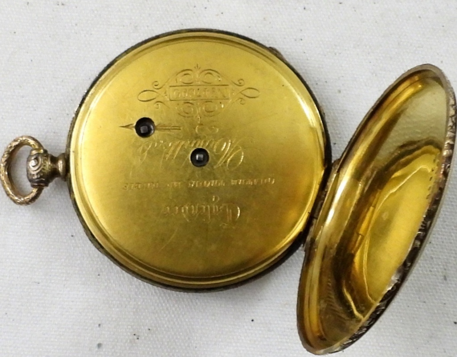 VINTAGE CYLNDRE KEY WIND UP POCKET WATCH, GOLD TONE #47360 . 19 SIZE . WITHOUT KEY. NOT TESTED AS TO WORKING OR NOT
