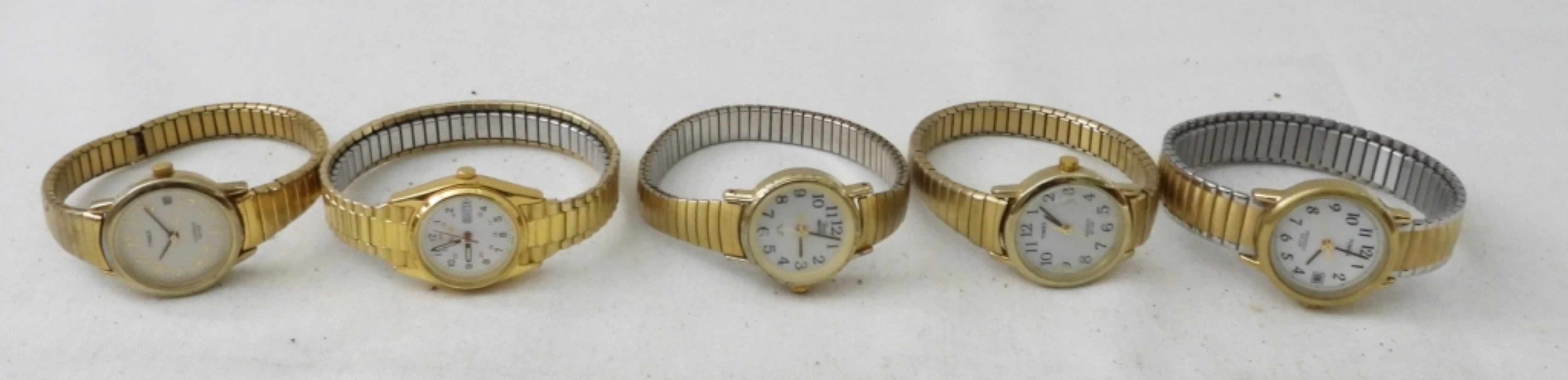 (10) GOLD TONE STRETCHY BAND LADIES WATCH.SEIKO,TIMEX & MORE