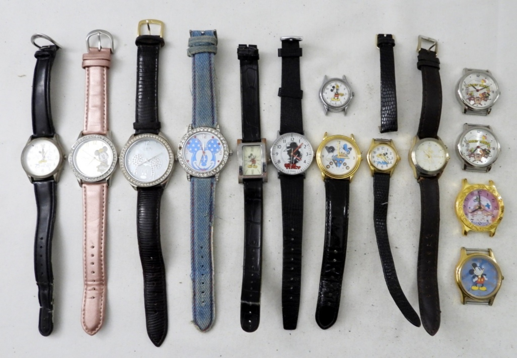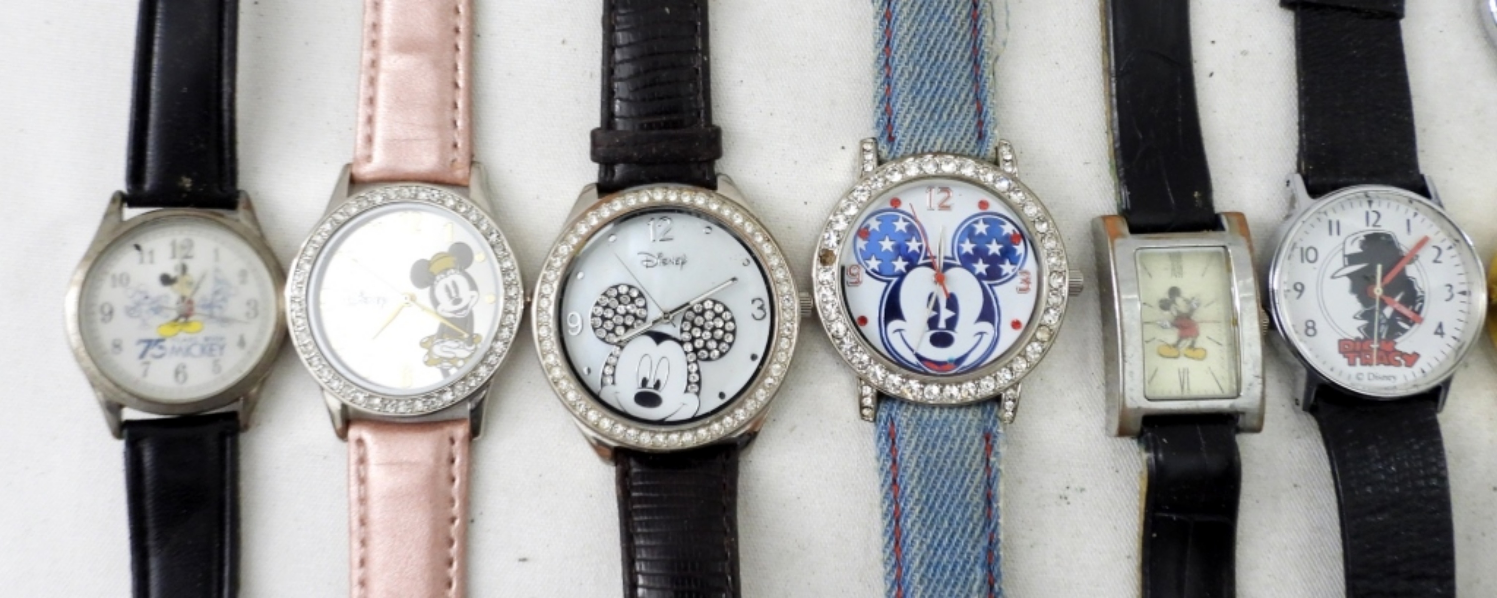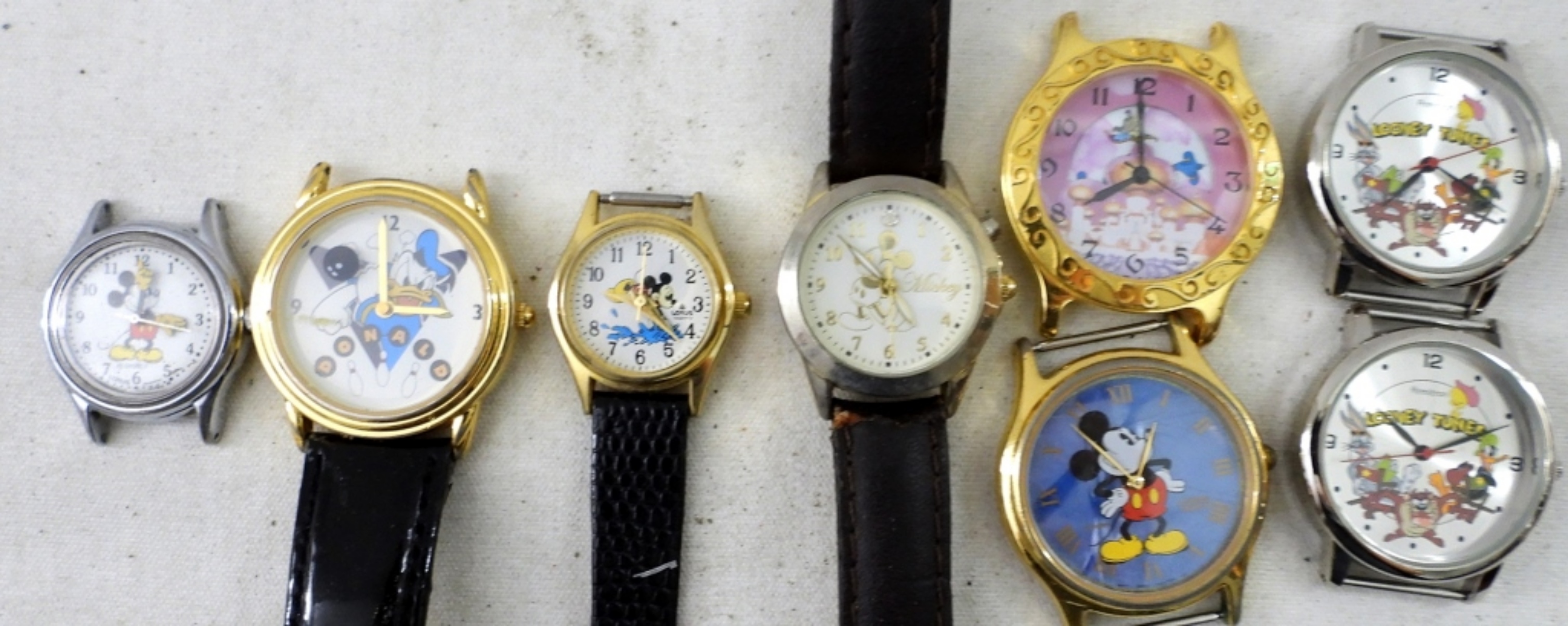 UNTESTED (14)DISNEY & WARNER BROS WATCHES AND WATCH FACES, MICKEY MOUSE, DICK TRACY, ALADDIN, LOONEY TUNES; ARMITRON, LORUS,OTHER BRANDS, BUCKLE CLASPS