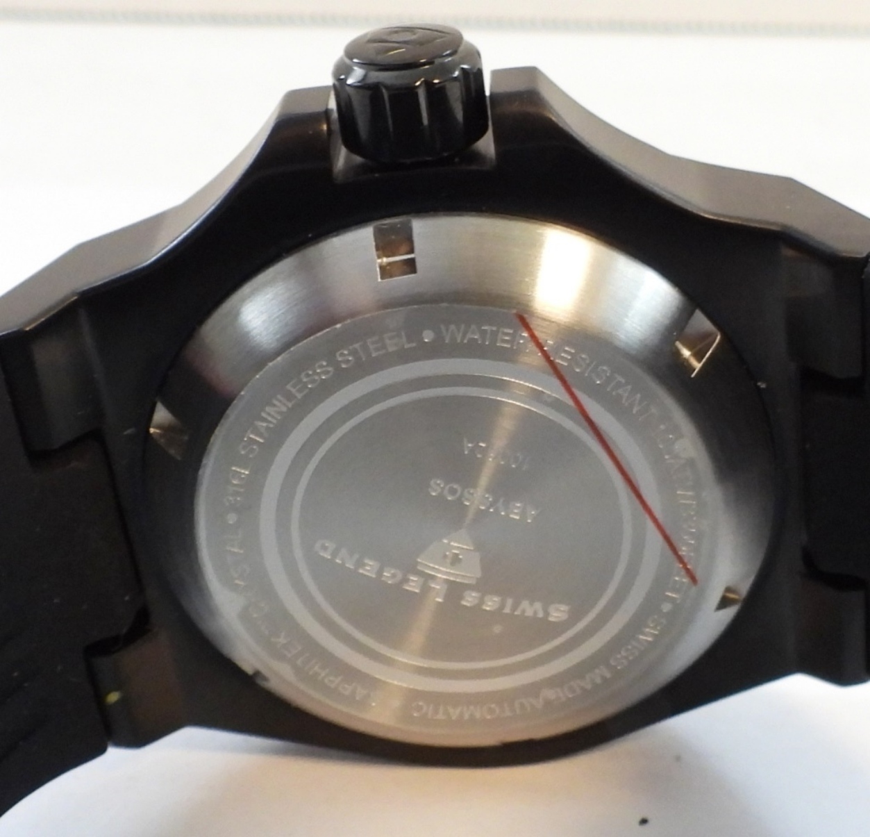 SWISS LEGEND. ABYSSOS # 10062A. SAPPHITEK CRYSTAL 316L STAINLESS STEEL. (CURRENTLY WORKING BUT NOT TESTED)