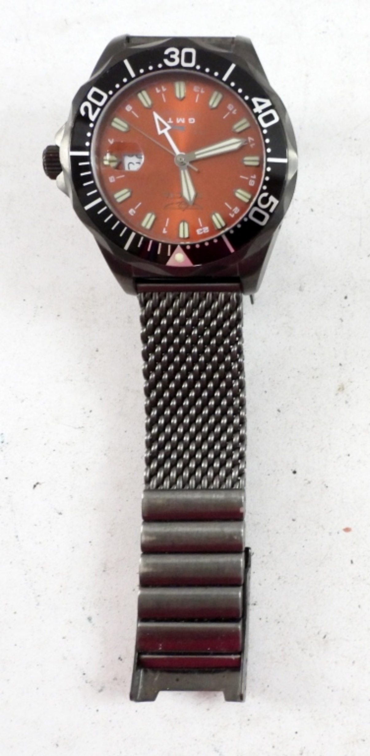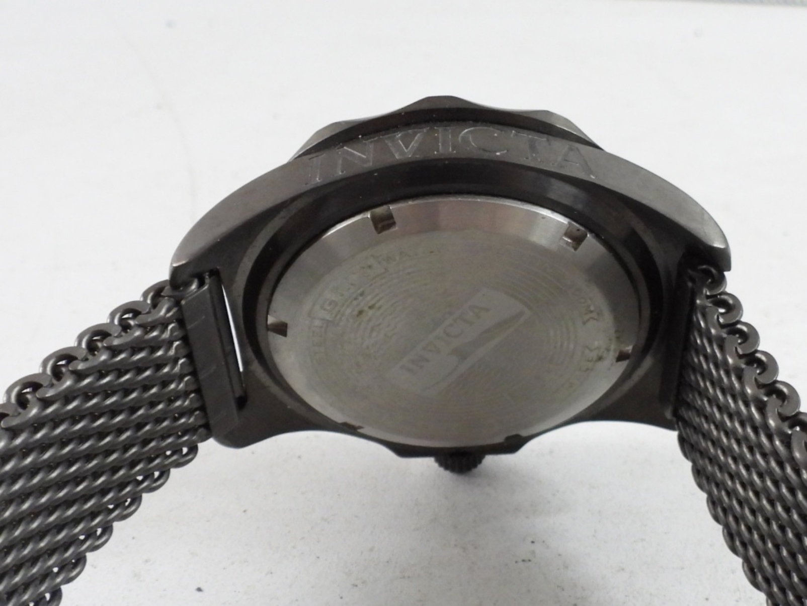 INVICTA MENS WATCH WITH DATE . BLACK BAND WITH RED DIAL. NOT TESTED AS TO WORKING OR NOT