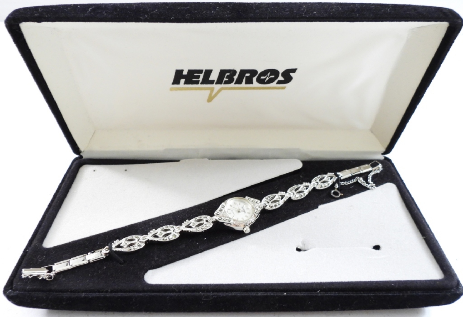 HELBROS LADIES WATCH , SILVER TONE . IN ORIGINAL BOX .NOT TESTED AS TO WORKING OR NOT
