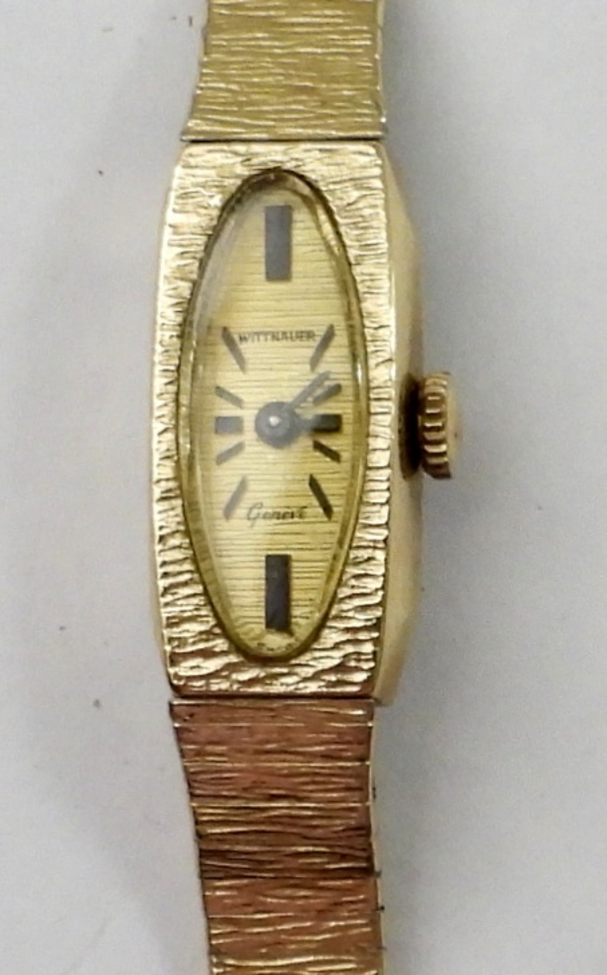 VINTAGE FASHIONABLE WITTNAUER 10K RGP BEZEL WOMENS WATCH, GOLD TONE