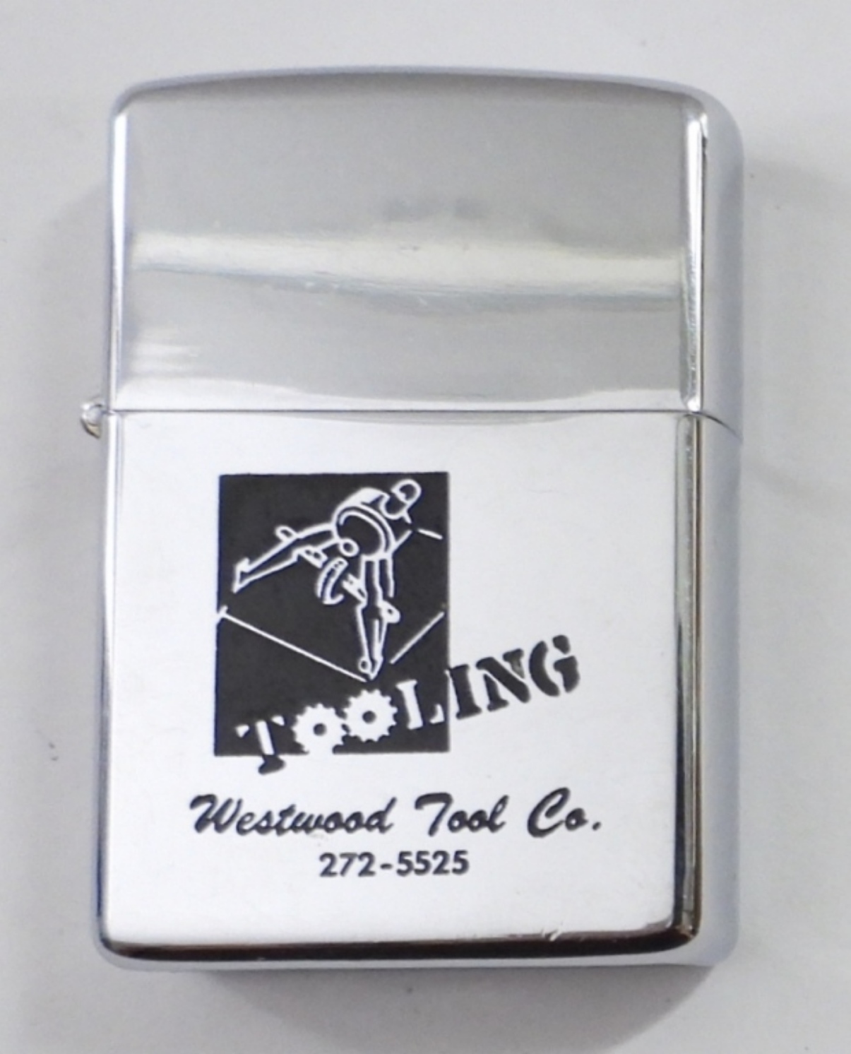 1966 ZIPPO MATCHING PAT W/ DESIGN, PAT 2517191 MATCHING INSERT, UNFIRED, “WESTWOOD TOOL CO” W PHONE NUMBER AND TOOLING DESIGN