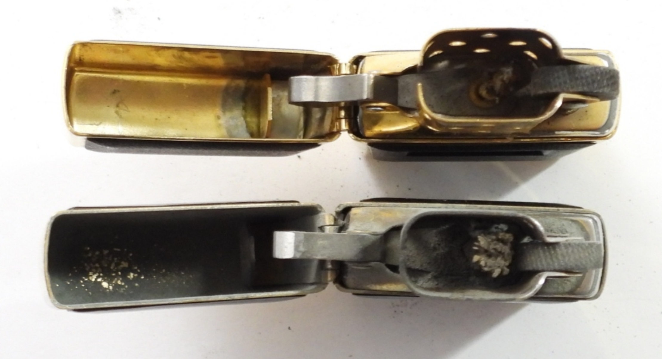 (2) FIRED BRASS BLACK EMABEL ZIPPO LIGHTERS1993 &2002