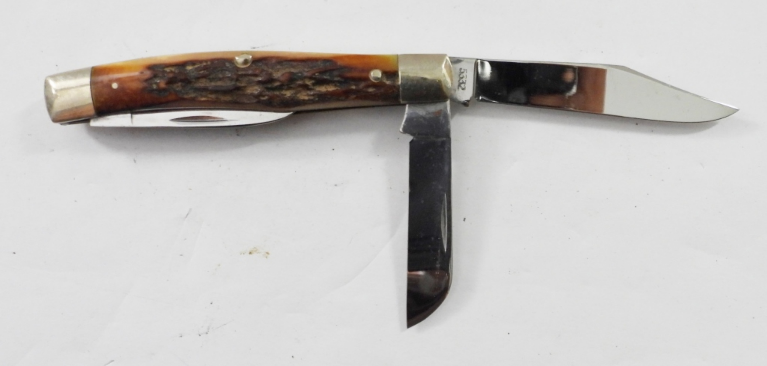 CASE 5332 THREE BLADE STOCKMAN KNIFE, STAG HANDLE, CASE XX USA (1965-1969), UNUSED CONDITOIN