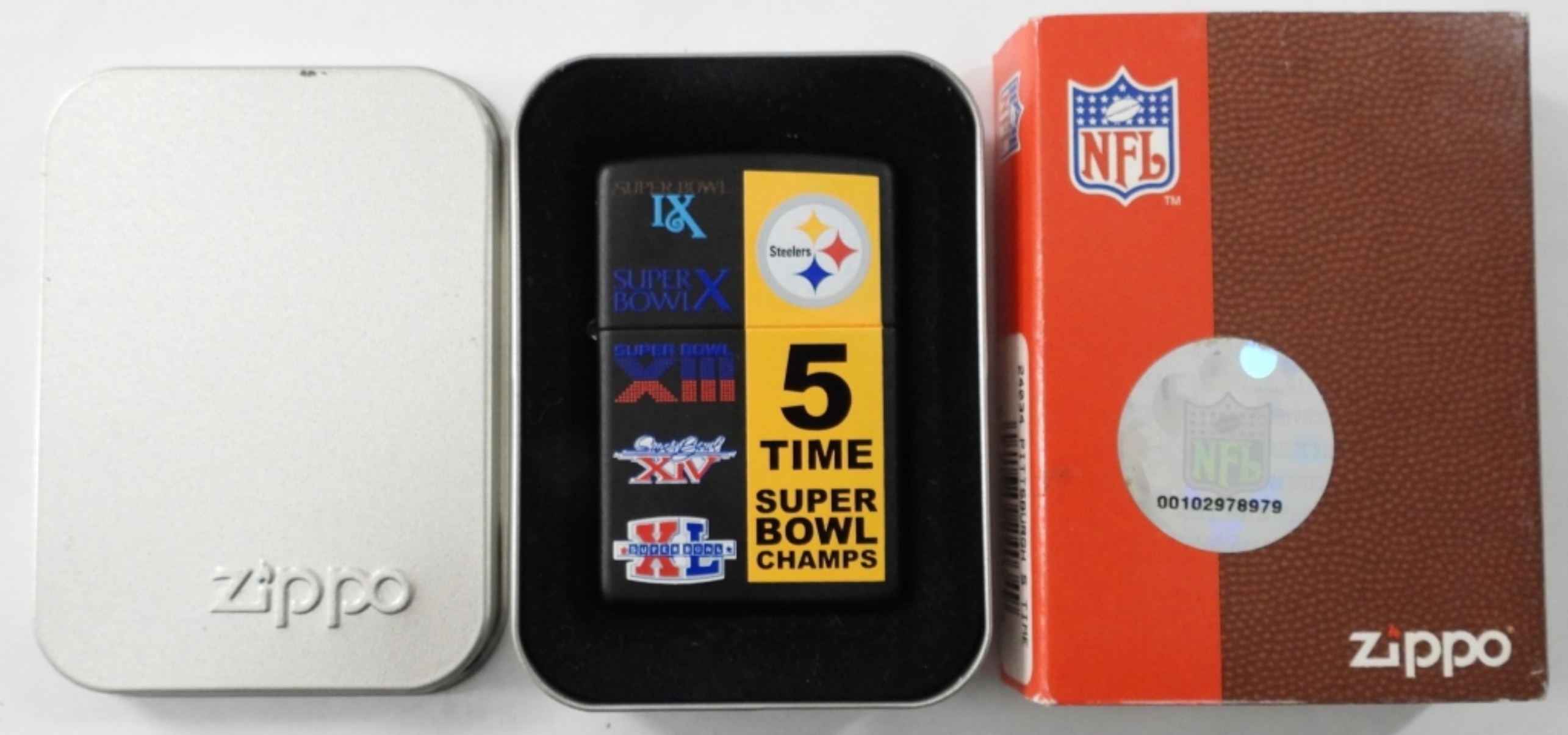 SEALED ZIPPO STEELERS 5X SUPERBOWL CHAMPS