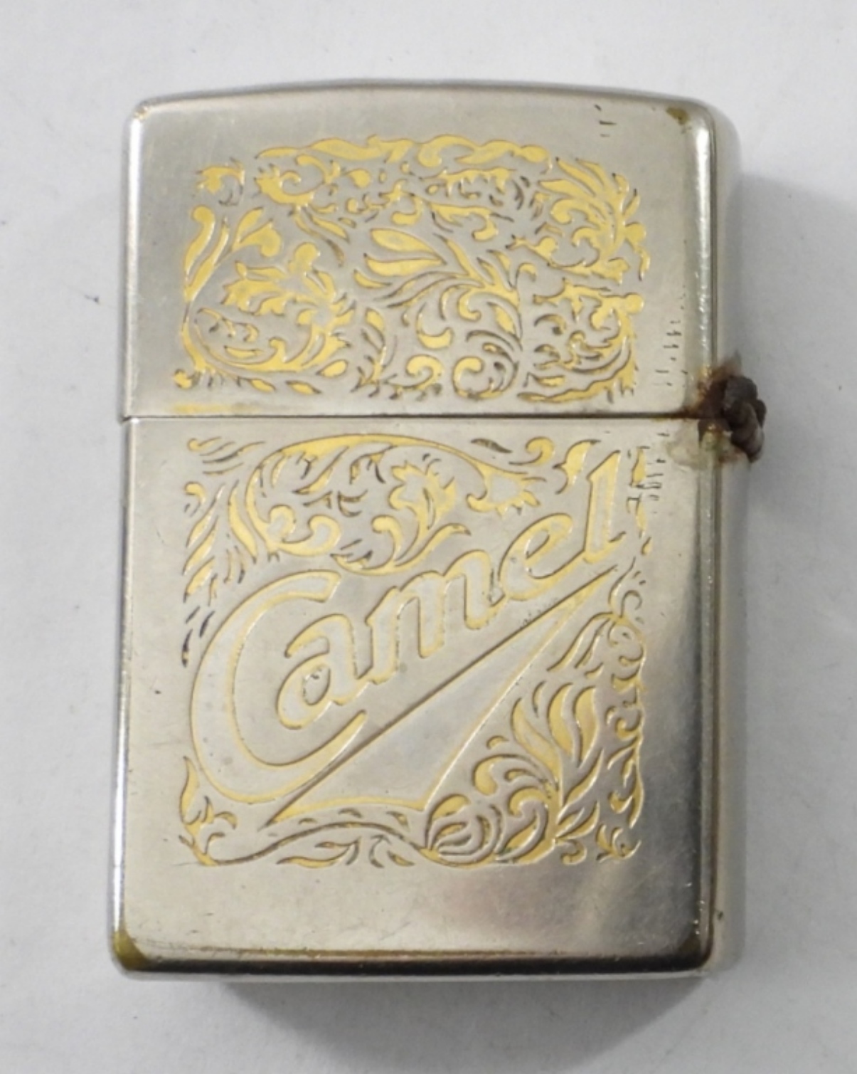 1995 FIRED CAMEL GOLD PLATED ZIPPO ( SLIGHT RUST INSIDE) IN BOX