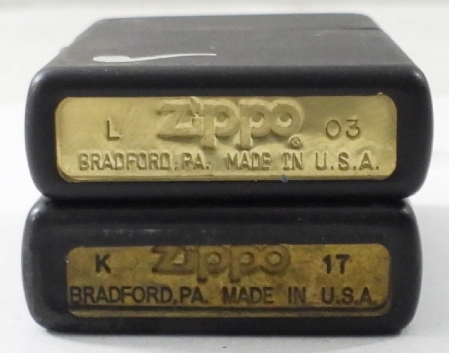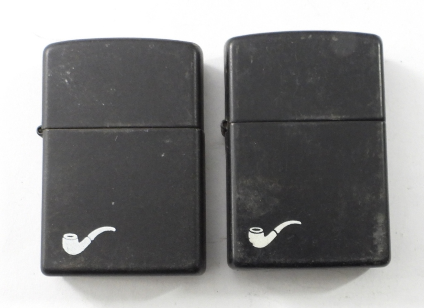 (2) FIRED BLACK MATTE PIPE EMBLEM ZIPPO 20017 &2003