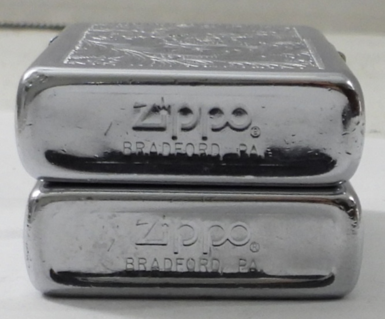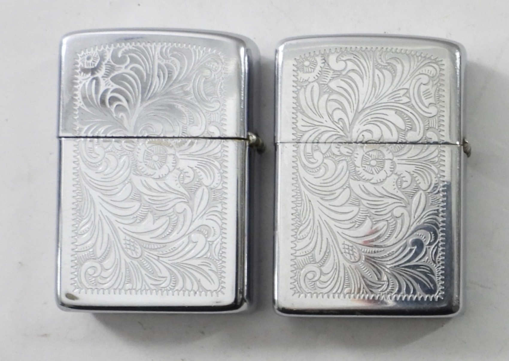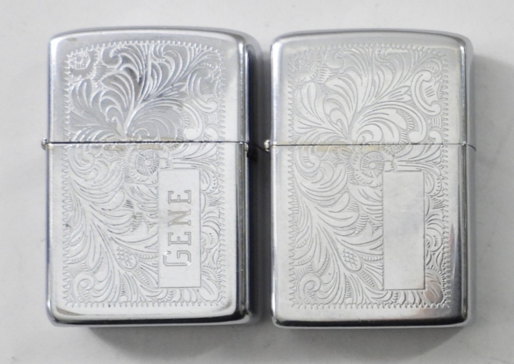 (2) 1980 FIRED CHROME VENETIAN ZIPPO, 1 IS MISSING A WICK
