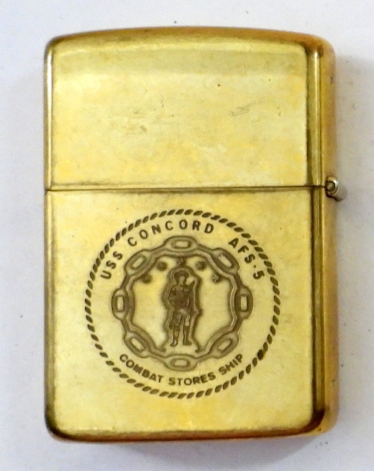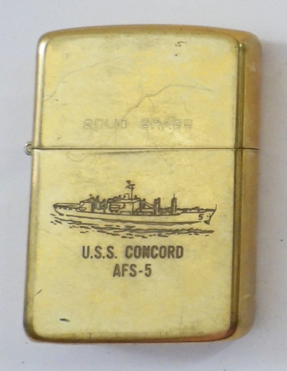 1986 FIRED U.S.S CONCORD AFS-5 BRASS ZIPPO LIGHTER ENGRAVED ON BOTH SIDES