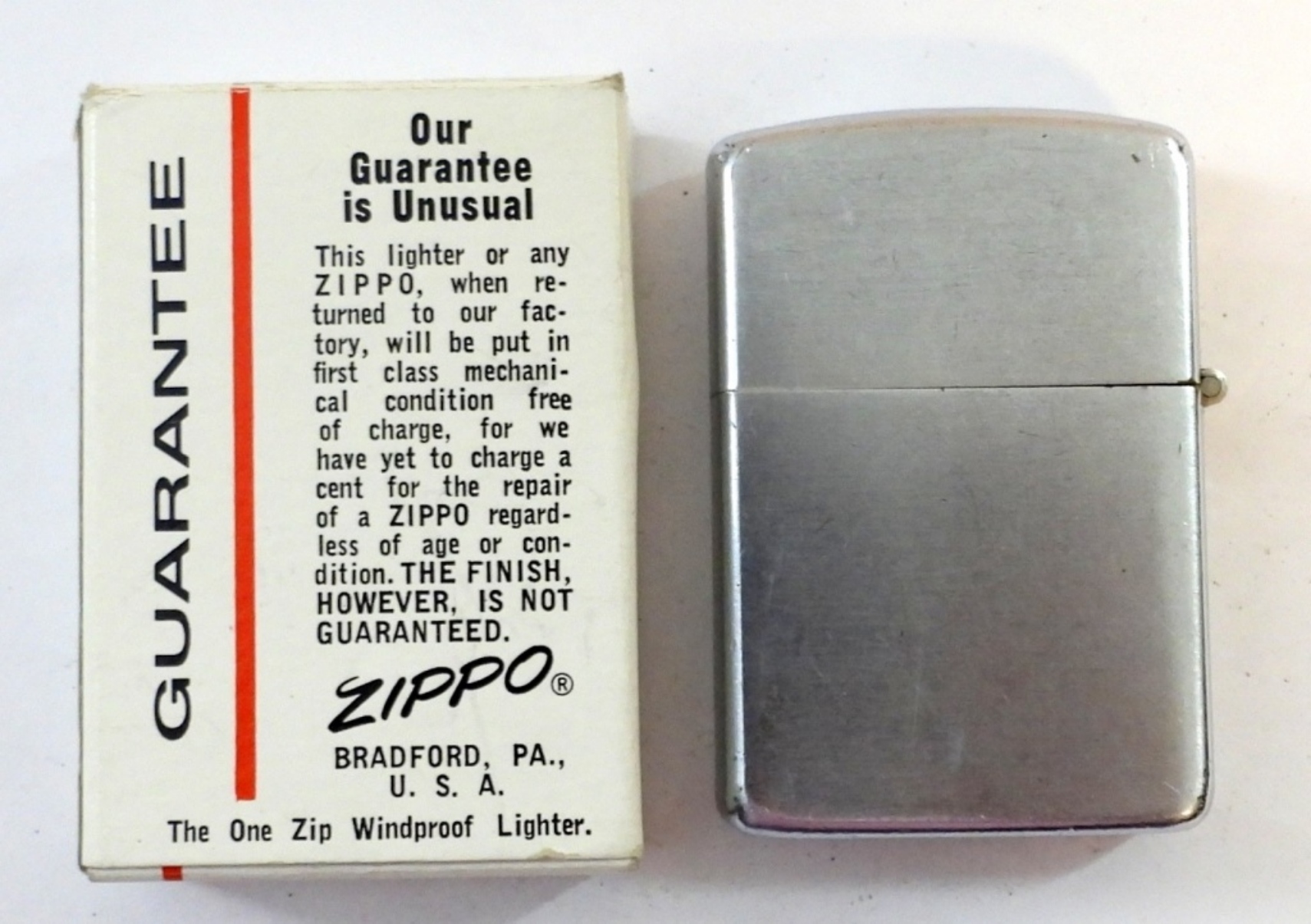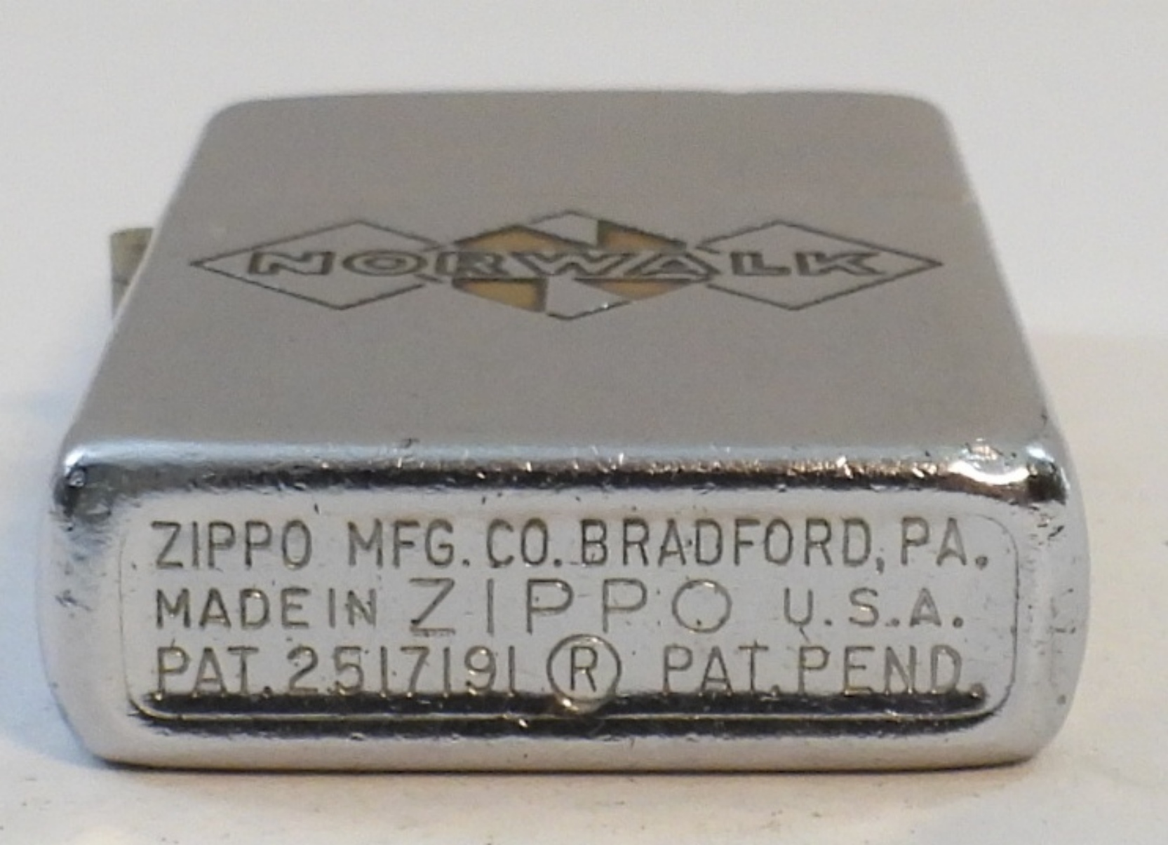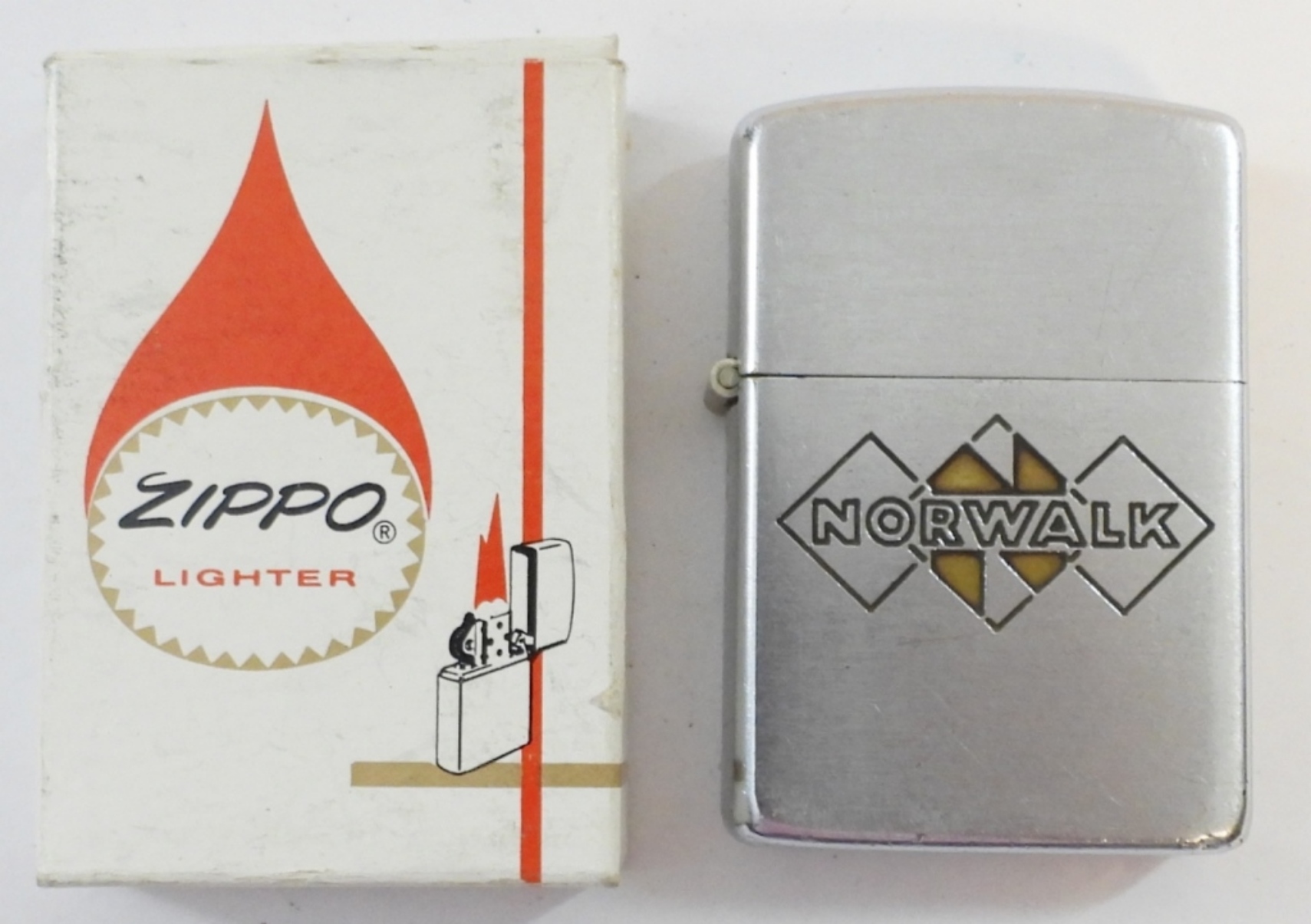 1950-1957 PAT PENDING (2517191) FIRED CHROME ZIPPO IN BOX NORWALK LOGO ( INSERT DOES NOT MATCH)