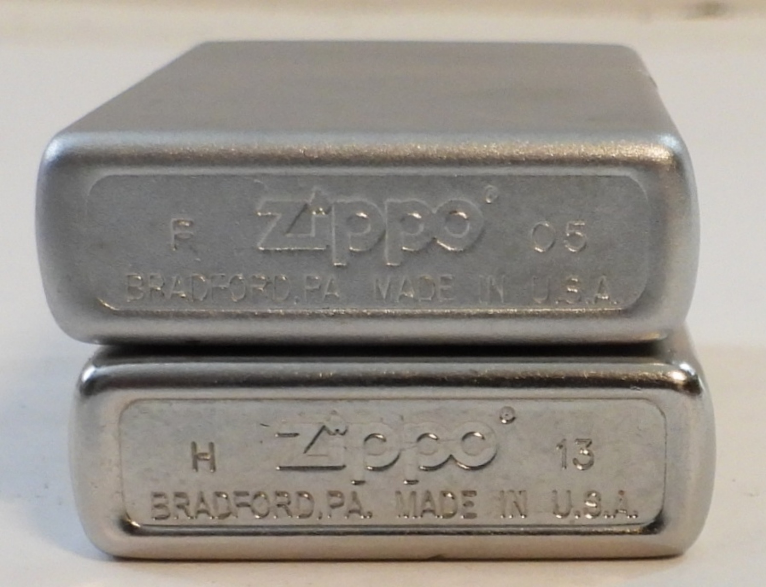 (2) FIRED CHROME ZIPPO LIGHTERS 2005 &2013
