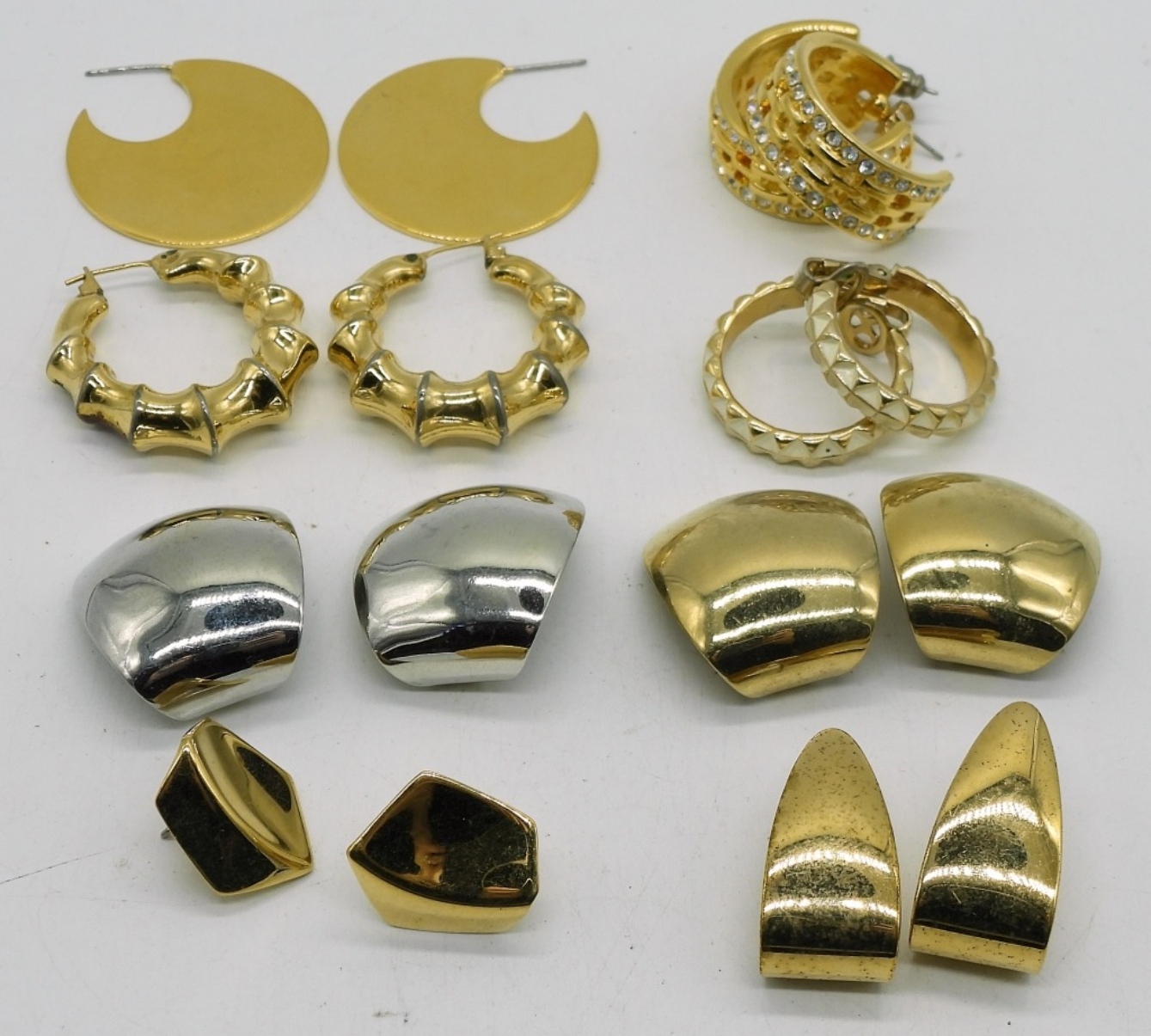 EIGHT PAIR OF VINTAGE PIERCED EARRINGS, GOLD AND SILVER TONES.