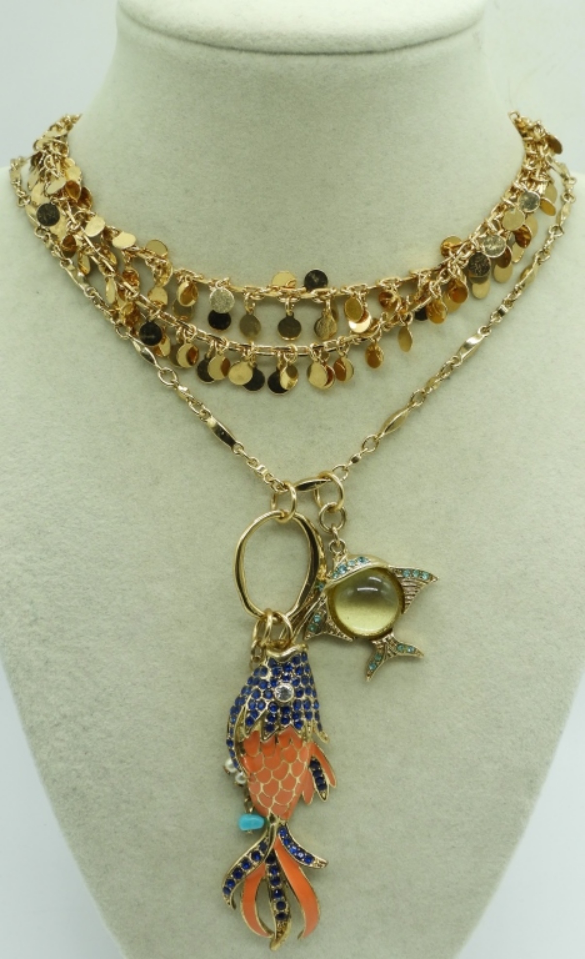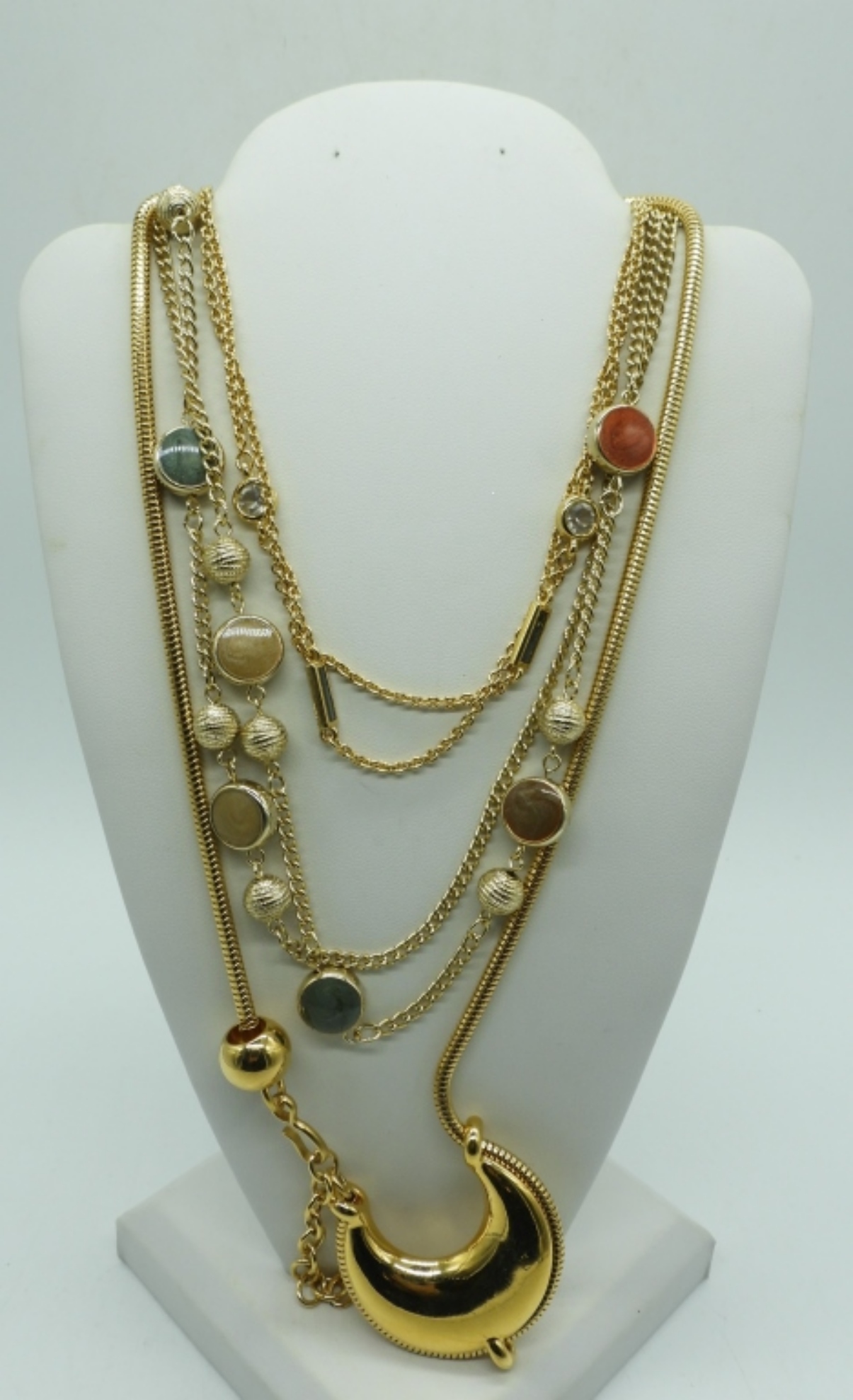 FIVE GOLD TONE COSTUME NECKLACES, VERY CUTE. 21″, 30″, 34″