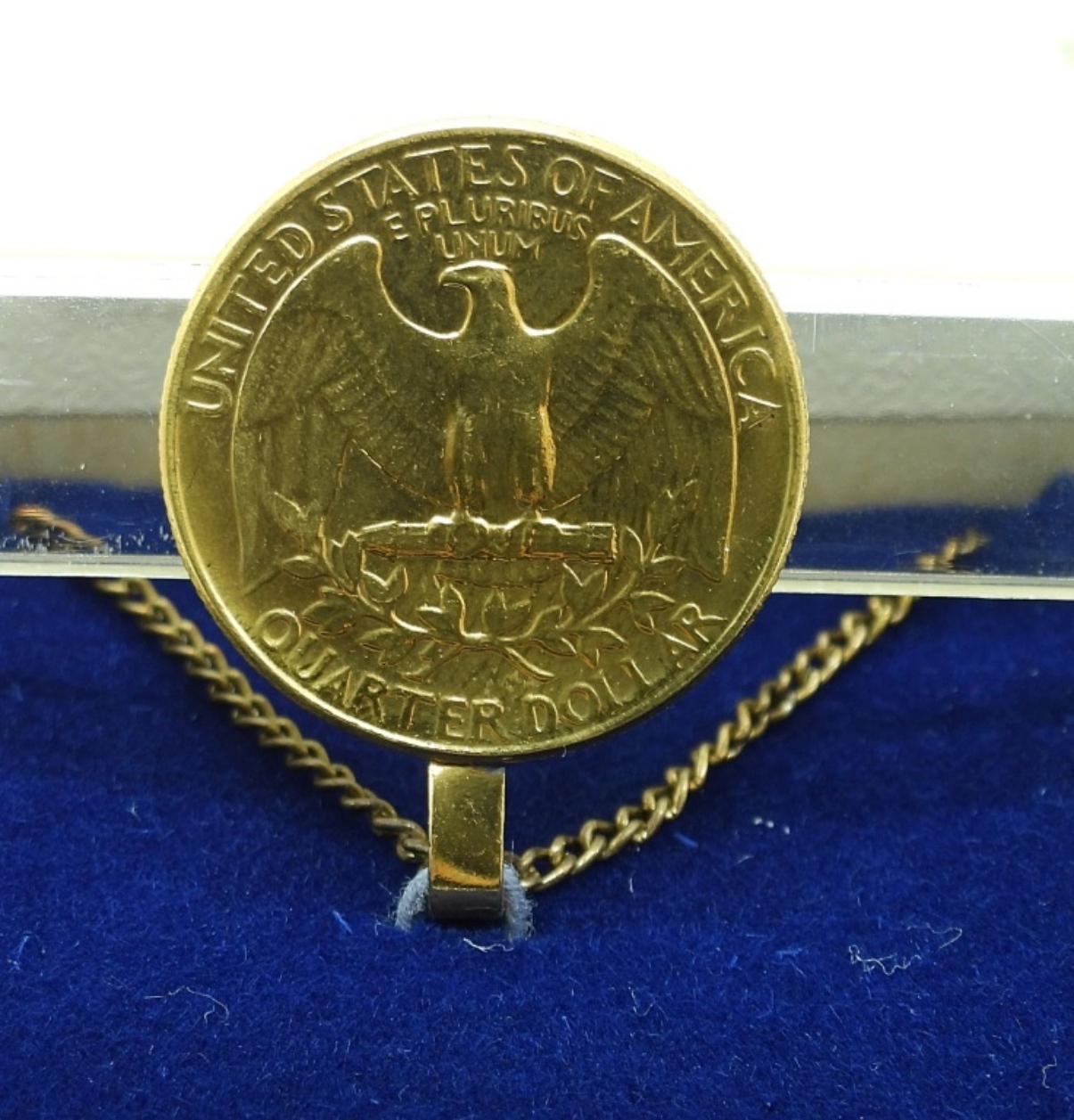 16″ GOLD TONE NECKLACE WITH A GENUINE U.S. COIN 24K GOLD PLATED.