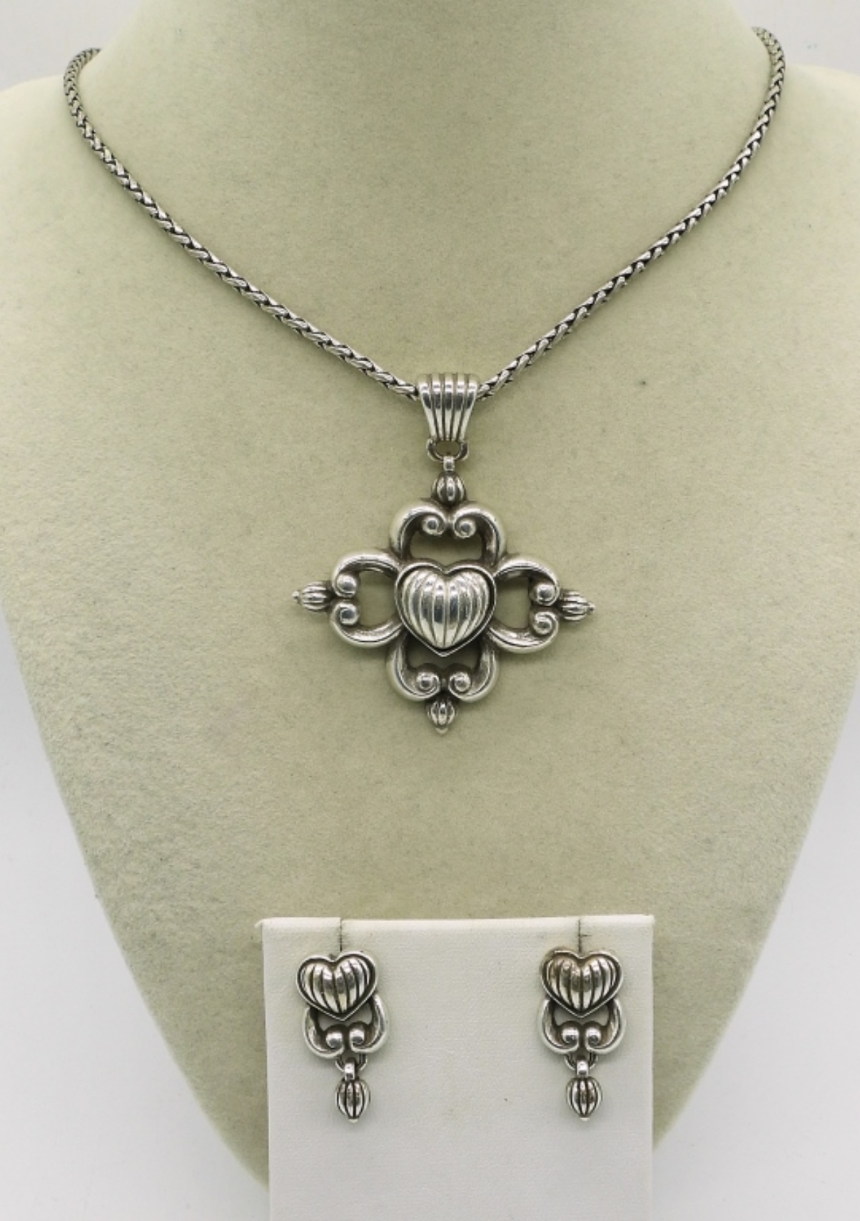 BRIGHTON BARONESS NECKLACE, 18″ AND MATCHING PIERCED EARRINGS! NEEDS A THOROUGH CLEANING!