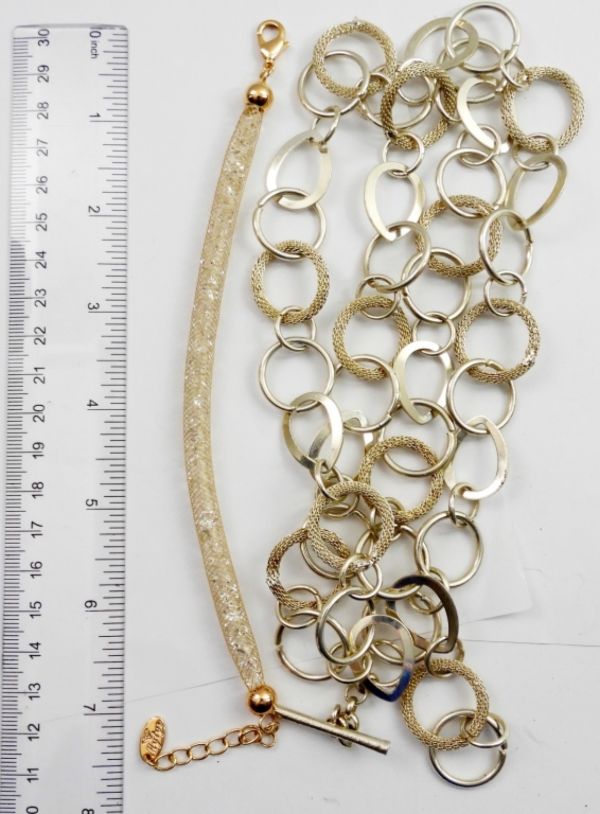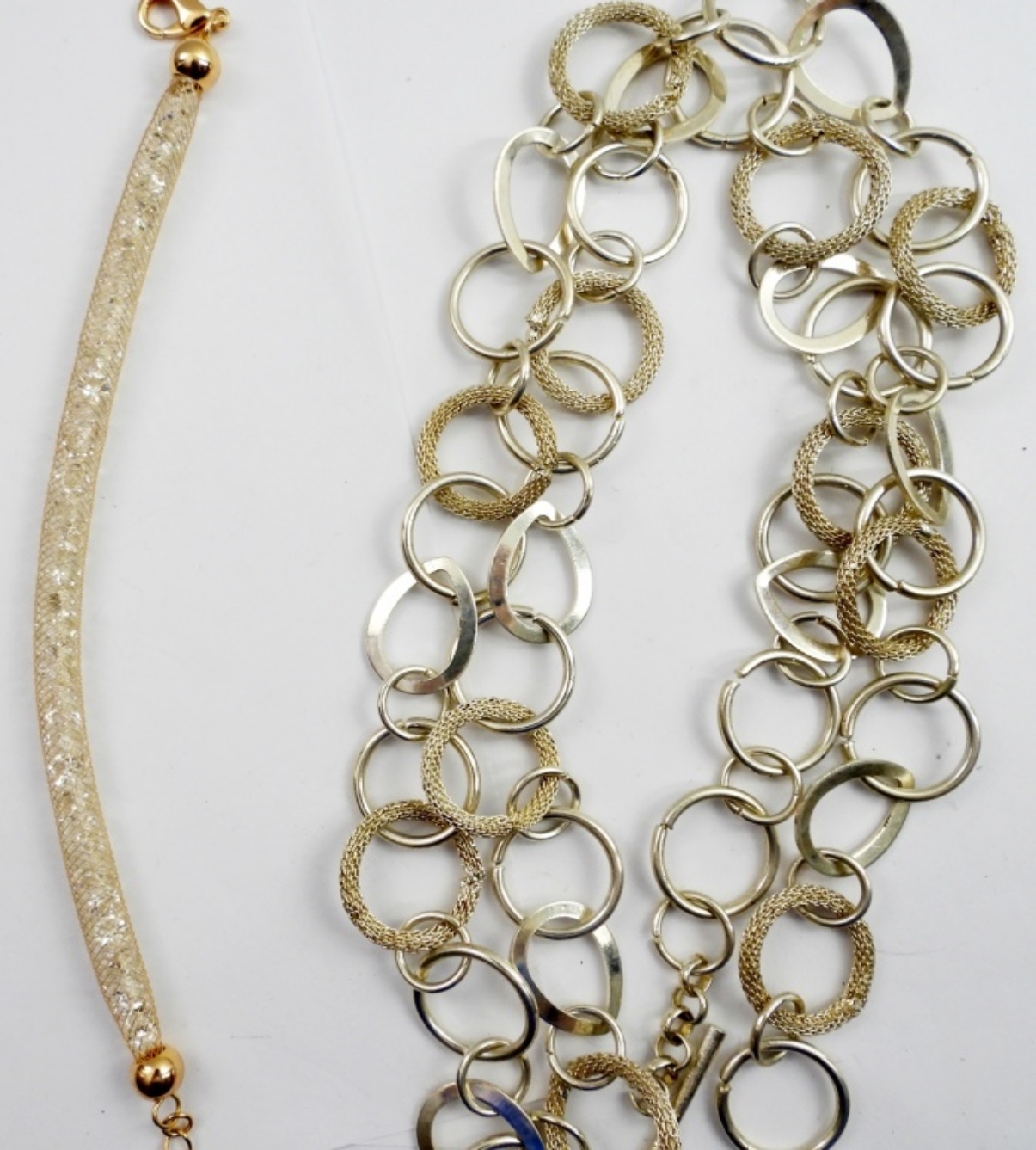 SILVER/GOLD TONE NECKLACE 35in LONG AND BRACELET 9 1/2in LONG
