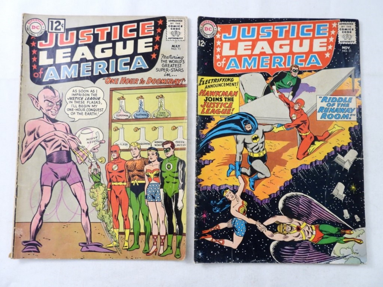(2) DC JUSTICE LEAGUE OF AMERICA #11 MURPHY ANDERSON COVER , #31 HAWKMAN JOINS JUSTICE LEAGUE ( F-G)