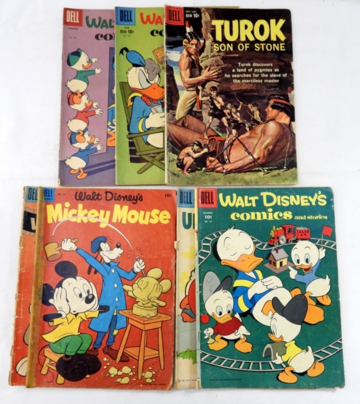 (8) 10 CENT GOLDEN/SILVER AGE DELL, GOOD/FAIR CONDITION, LOONEY TUNES, MICKEY MOUSE, UNCLE SCROOGE, WALT DISNEY, TUROK