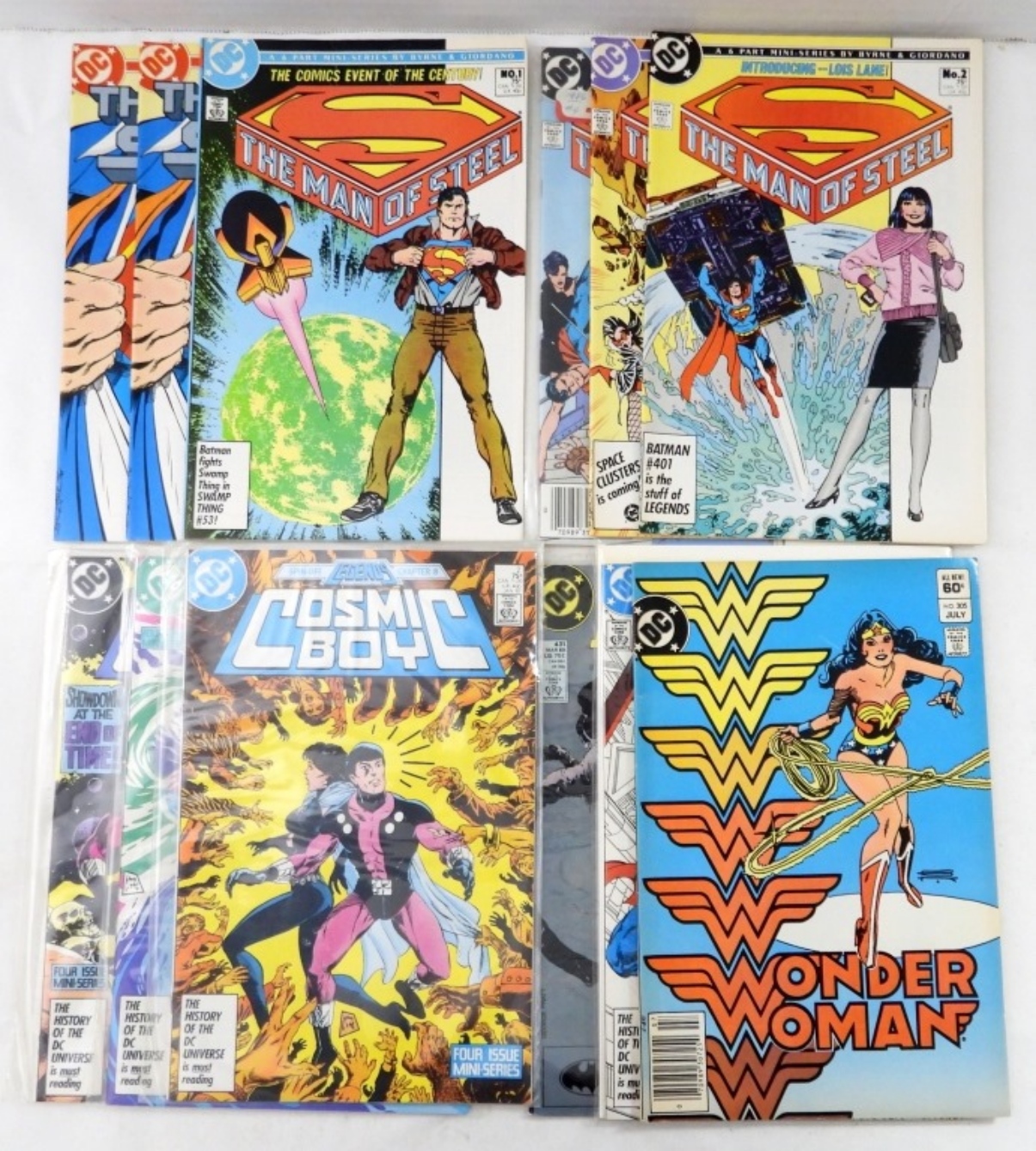 (12) DC MAN OF STEEL & OTHERS, MIX OF GOOD, VERY GOOD, FINE CONDITION, MAN OF STEEL #1 (X3) BOTH COVERS, 2,3, 4; WONDER WOMAN #305, ACTION COMICS SUPERMAN VS THE DEMON, BATMAN #431, COSMIC BOY # 2,3,4