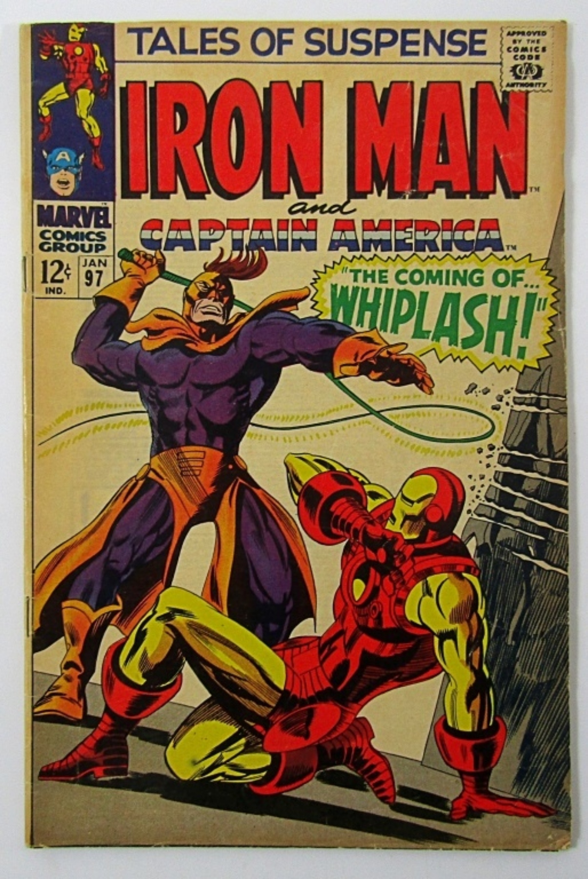 SILVER MARVEL TALES OF SUSPENSE IRON MAN/ CAPTAIN AMERICA #97 (VG+)STAN LEE/ JACK KIRBY . WHIPLASH