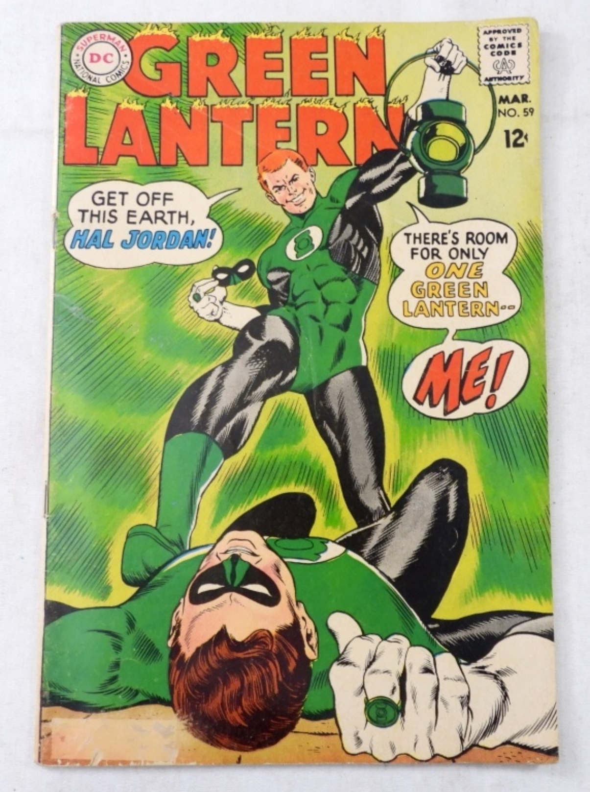 GOOD ( DOES HAVE A TAPE MARK ON LEFT BOTTOM CORNER) 1968, 1ST APPEARANCE OF GUY GARDNER, HAL JORDANS BACKUP GREEN LANTERN