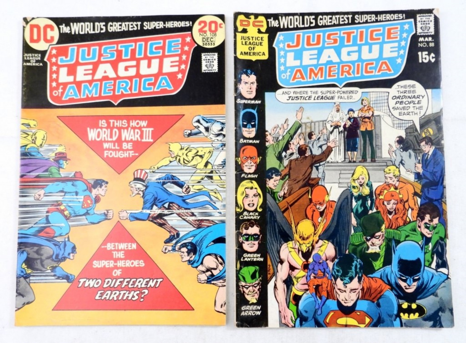 (2) BRONZE DC JUSTICE LEAGUE OF AMERICA #88,#108 TEO DIFFERENT EARTHS (G-VG)