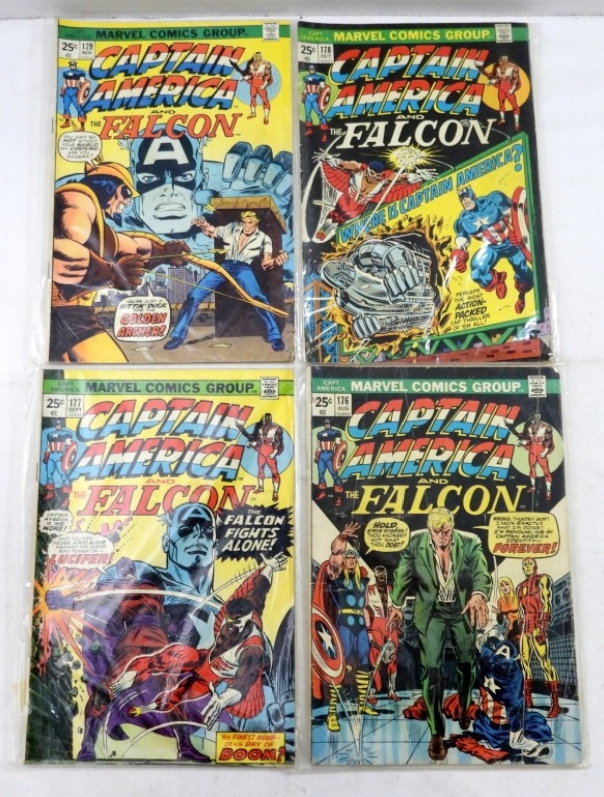 (4) BRONZE CAPTAIN AMERICA COMICS #176 STEVE ROGERS QUITS AS CAPTAIN AMERICA ,#177 THE FALCON FIGHTS ALONE, #178 IF THE FALCON SHOULD FALL,#179 RON WILSON COVER (G-VG)