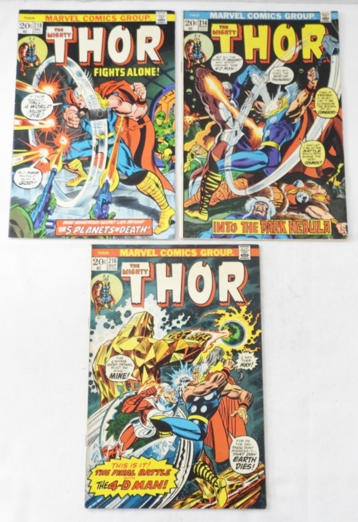 (3) BRONZE MARVEL THE MIGHTY THOR #214, #216,#218 GOD OF THUNDER,LOKI ODIN ASGAR SIF( VG/VF)