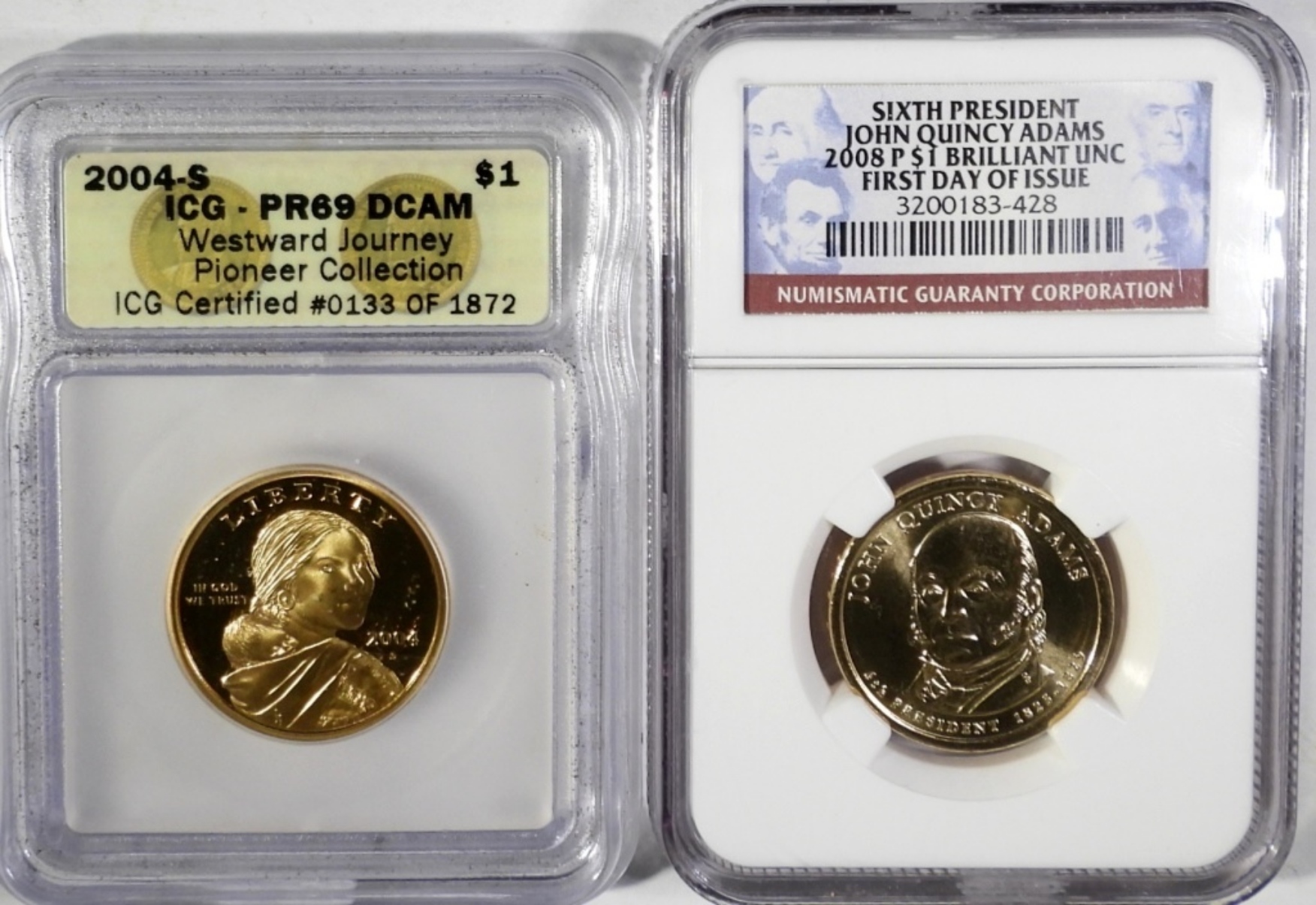 2004-S ICG PF69DCAM & 2008-P JOHN QUINCY ADAMS SIXTH PRESIDENT NGC BU