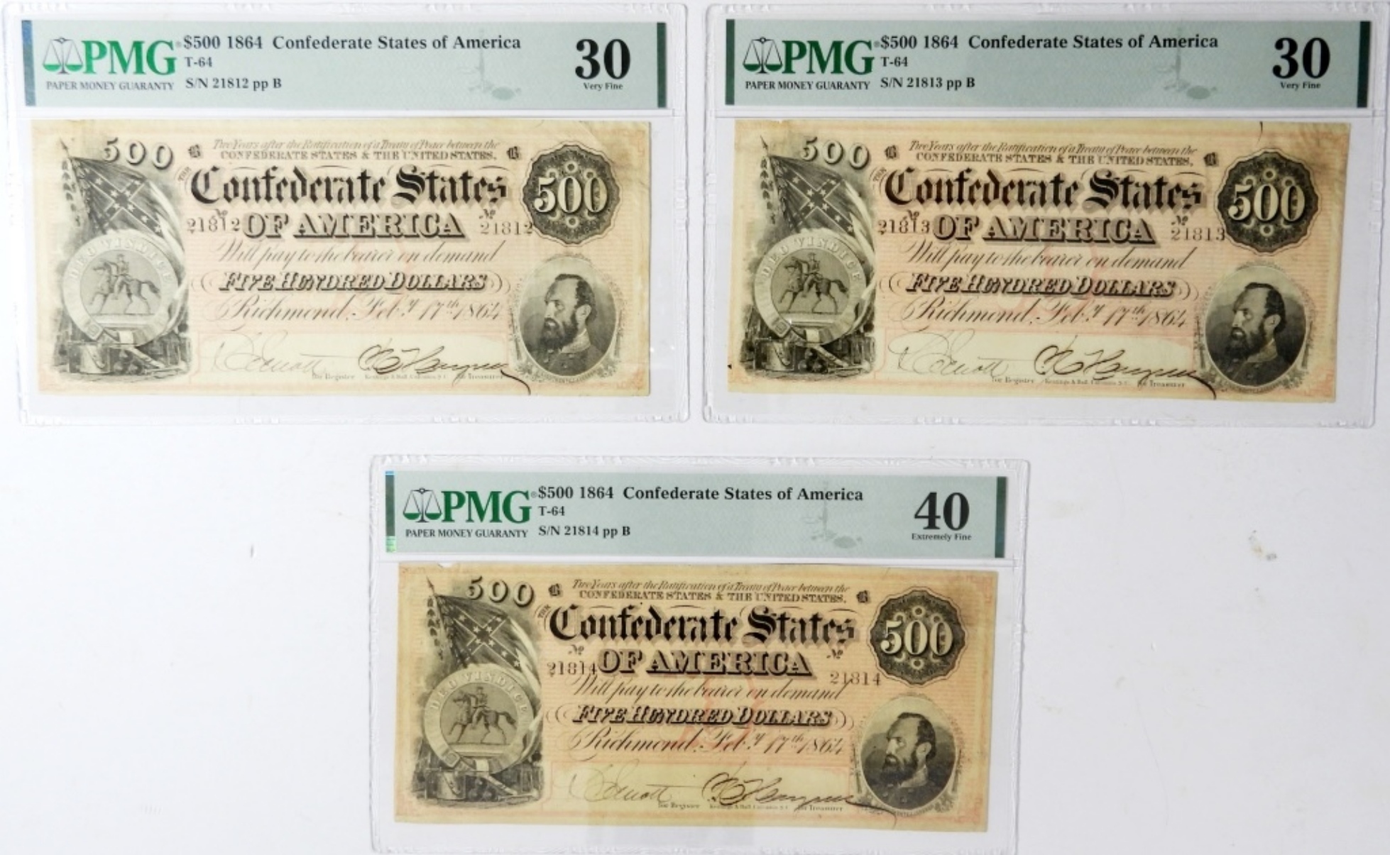 3-1864 $500 CONFED NOTE CONSEC SER #'S