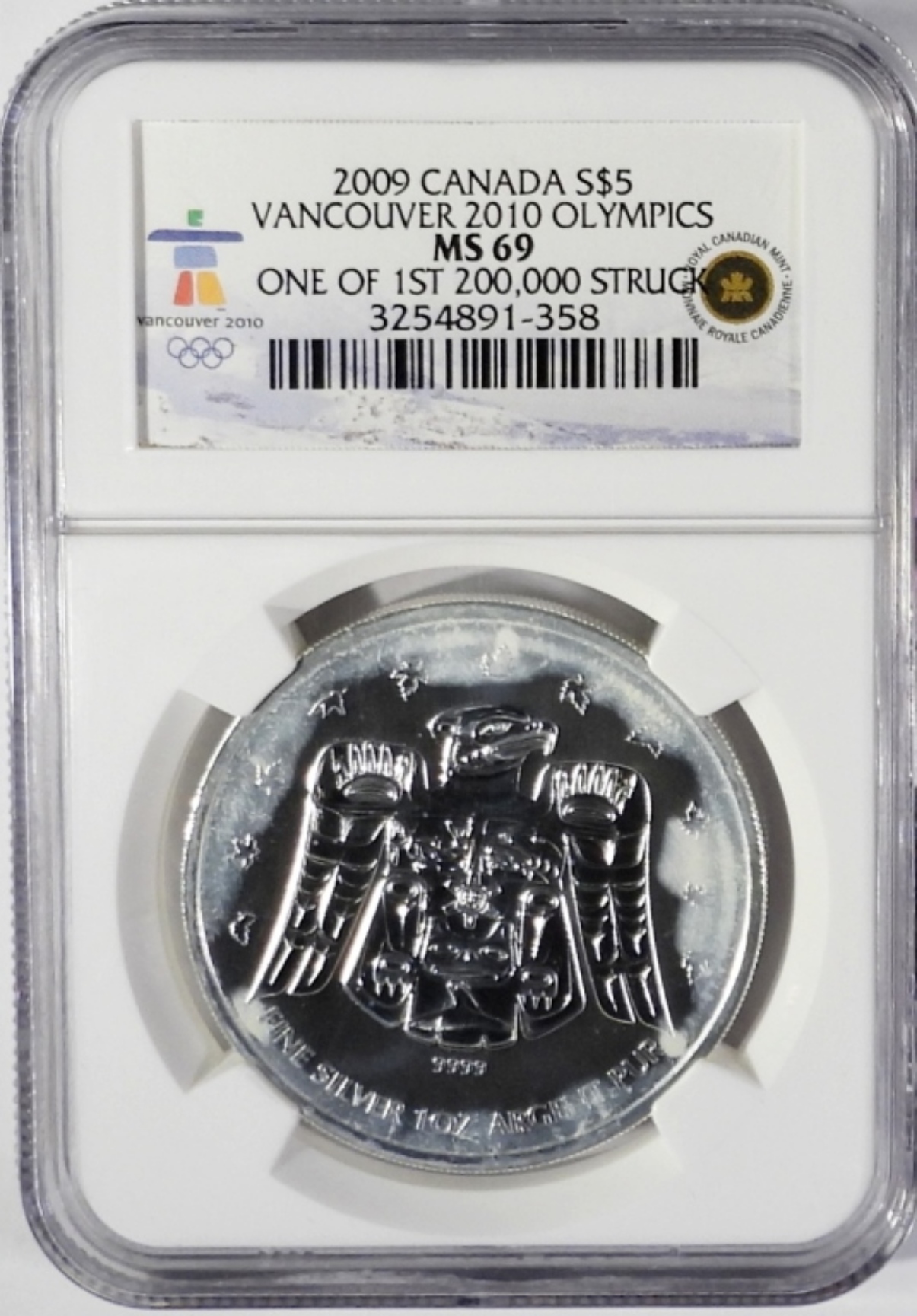 NGC 2009 CANADA S$5 VANCOUVER 2010 OLYMPICS MS69 1OF THE 1ST 200,000 STRUCK