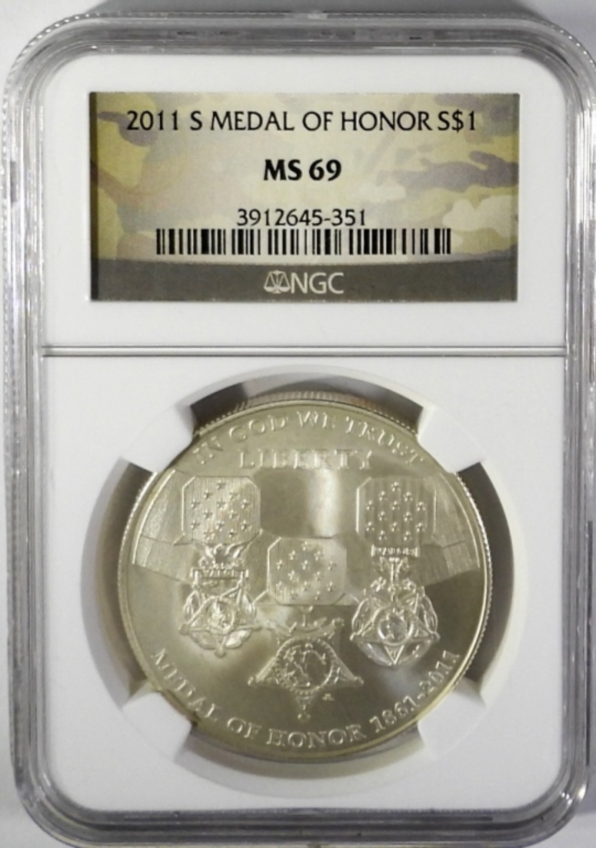 NGC 2011 S MEDAL OF HONOR S$1 MS 69 US COMMEMORATIVE