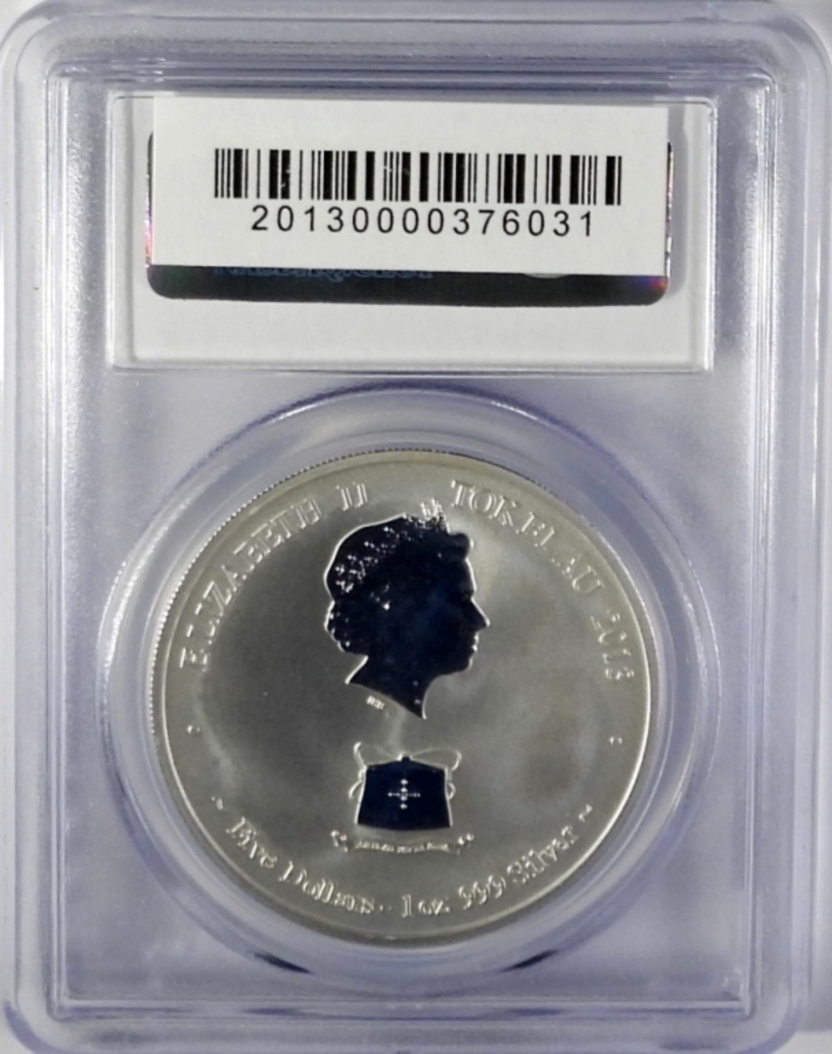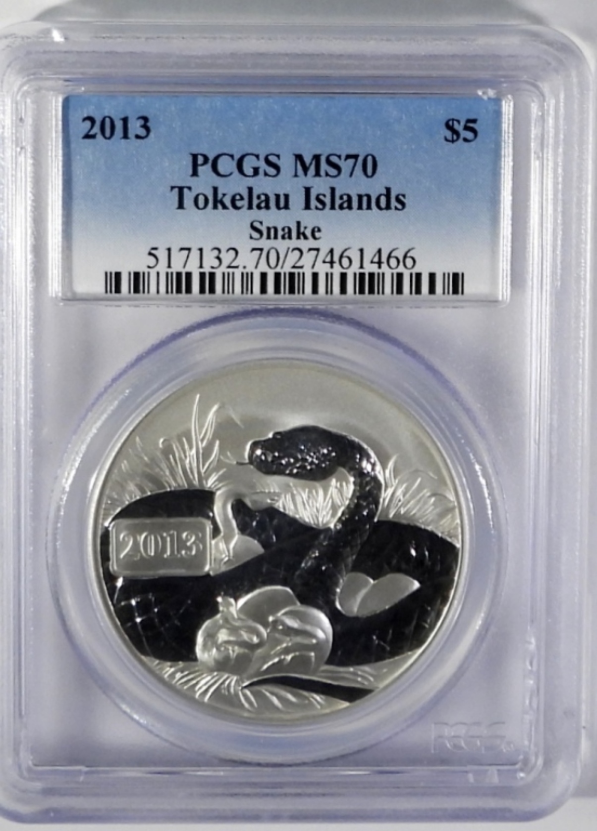 2013 $5 PCGS MS70 TOKELAU ISLAND SNAKE 1OZ 999 SILVER
