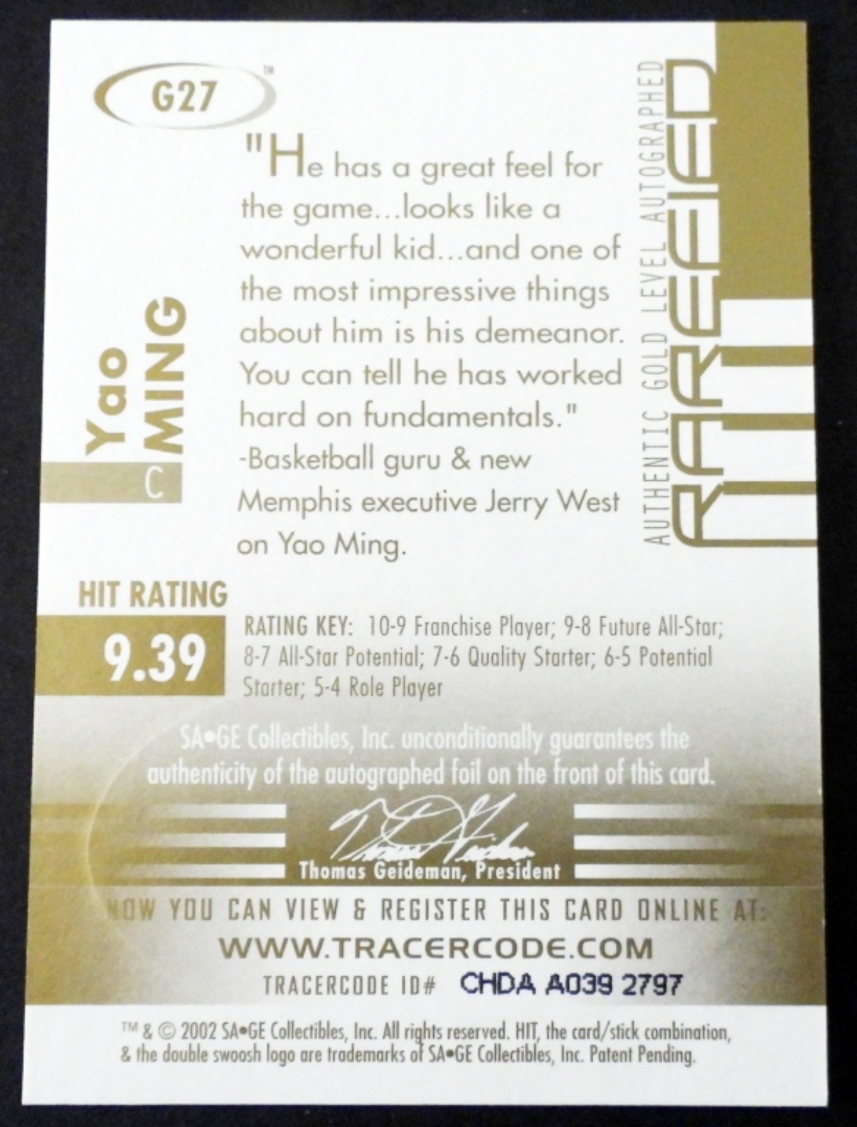 NO COA, RAREIFIED GOLD LEVEL AUTOGRAPH