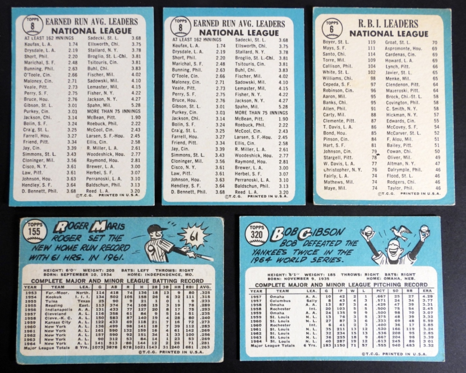 (3) LEAGUE LEADERS, BOB GIBSON – OVERALL EX-VGEX