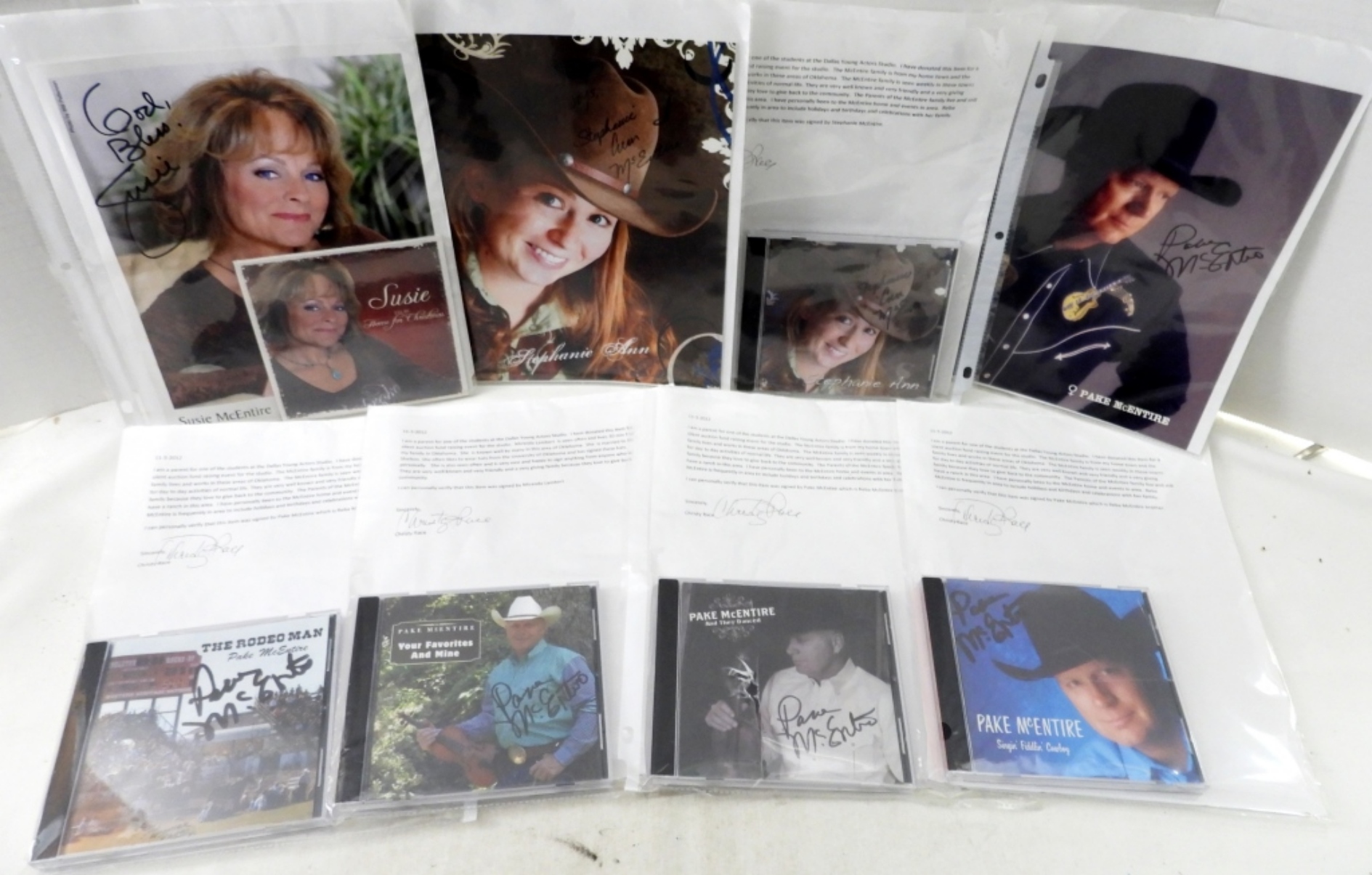McENTIRE FAMILY SIGNED CD COLLECTION PAKE McENTIRE (REBA BROTHER ) 4 AUTOGRAPHED CD’S AND 8X10 , SUSIE McENTIRE (REBA’S SISTER) SIGNED CD AND 8X10 & STEPHANIE ANN McENTIRE SIGNED CD& 8X10 (6 CD TOTAL WITH 3