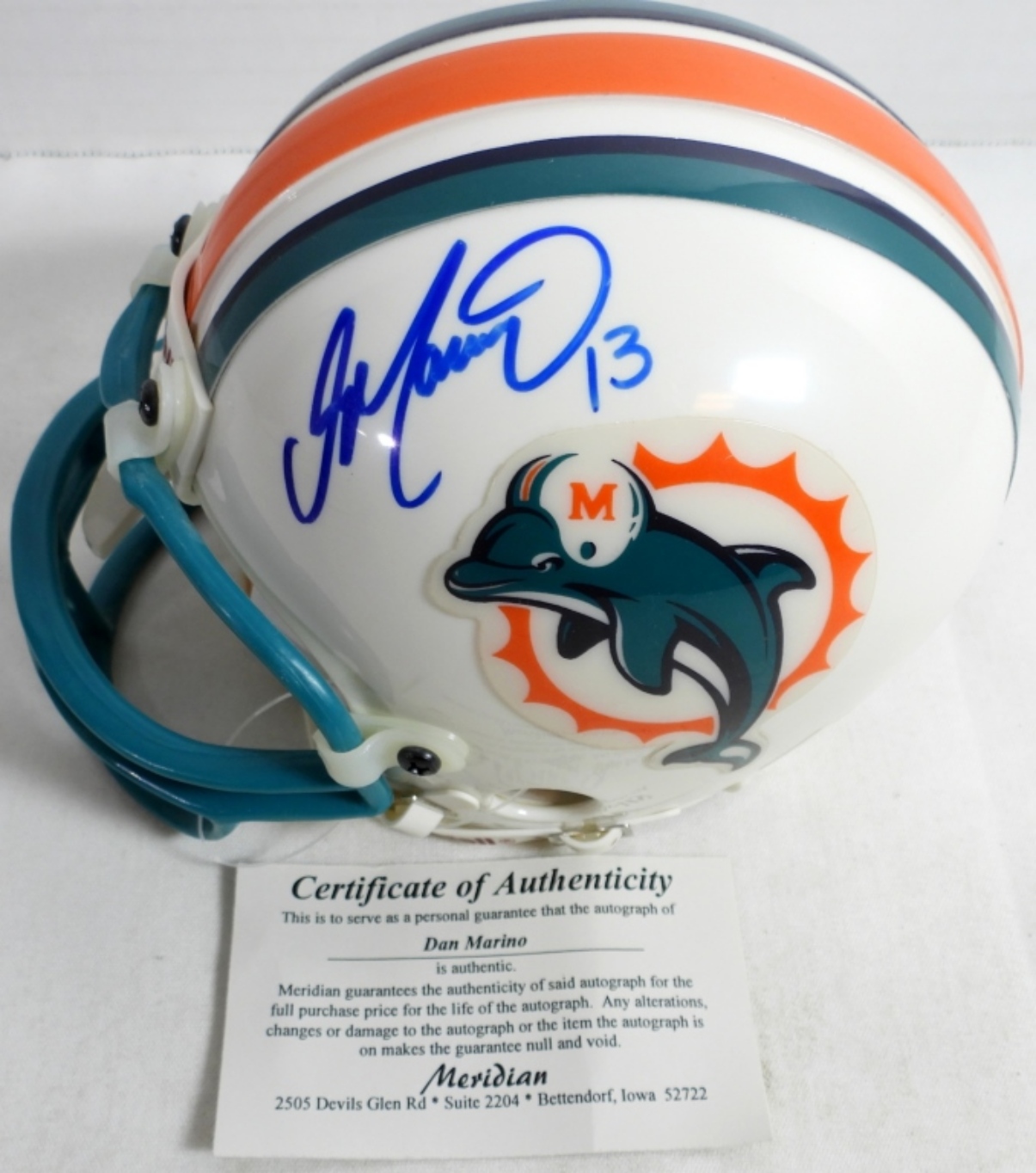 NO COA MINI MIAMI DOLPHINS RIDDELL HELMET DAN MARINO
