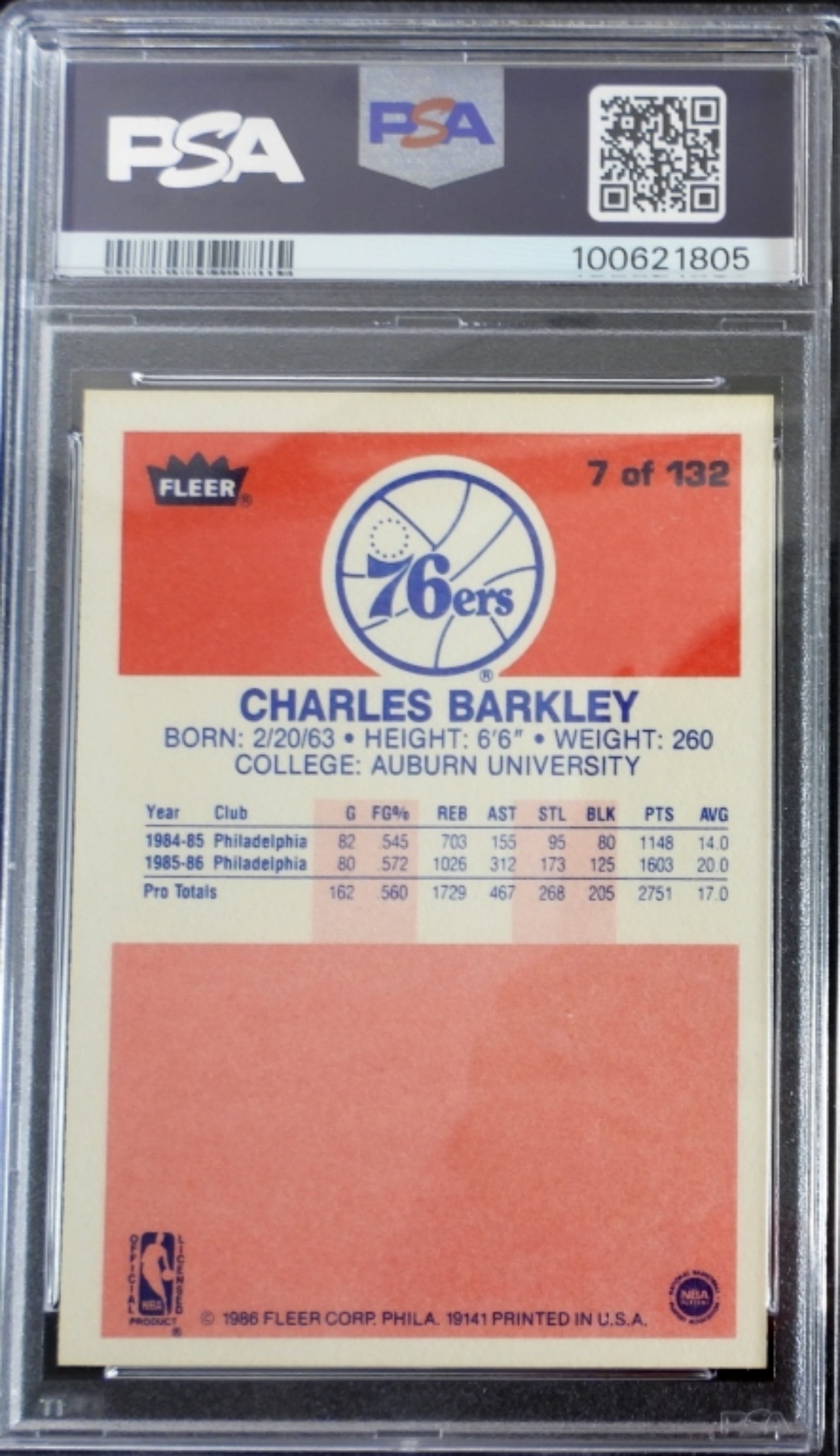 1986 FLEER # 7 CHARLES BARKLEY PSA 8