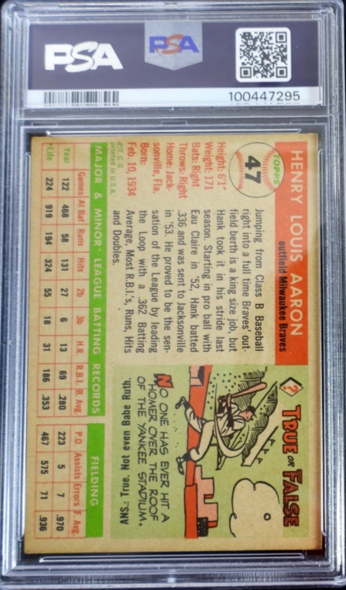 1955 TOPPS #47 HANK AARON PSA 5
