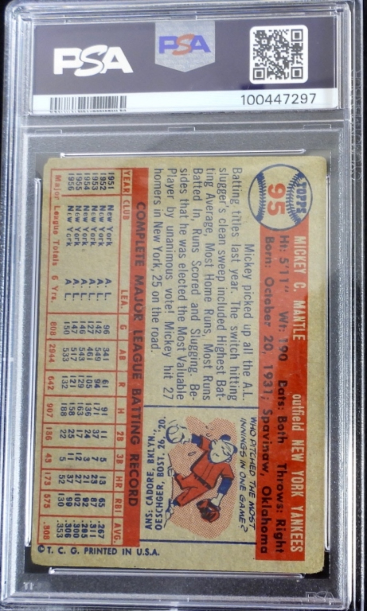 1957 TOPPS # 95 MICKEY MANTLE PSA 1.5